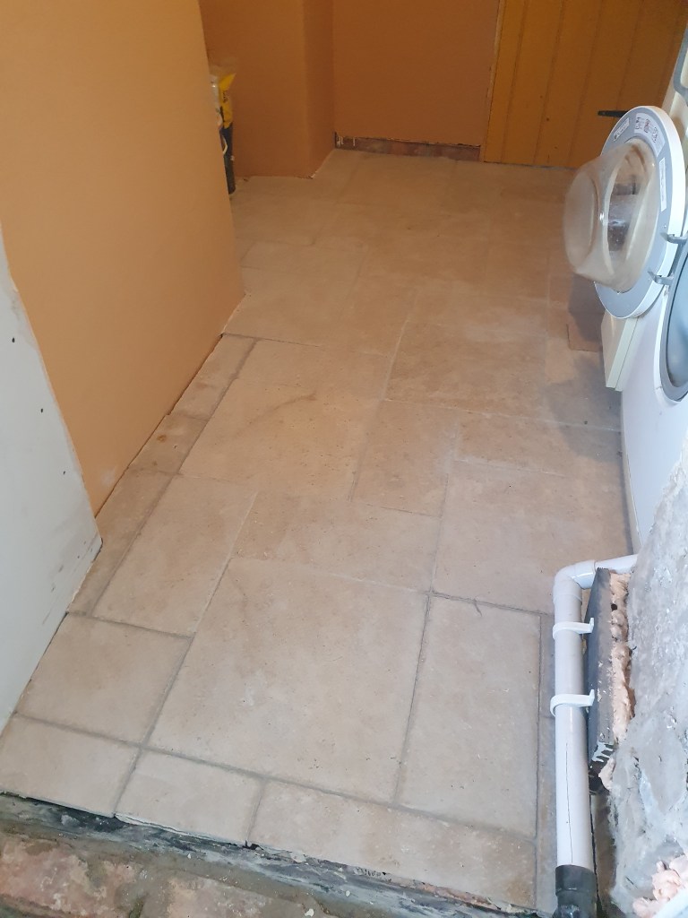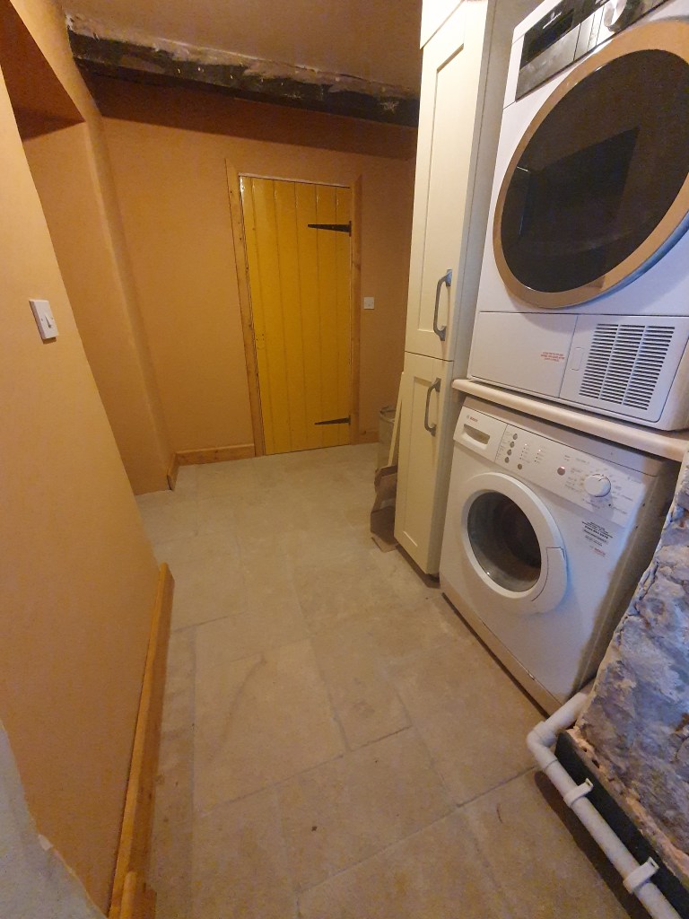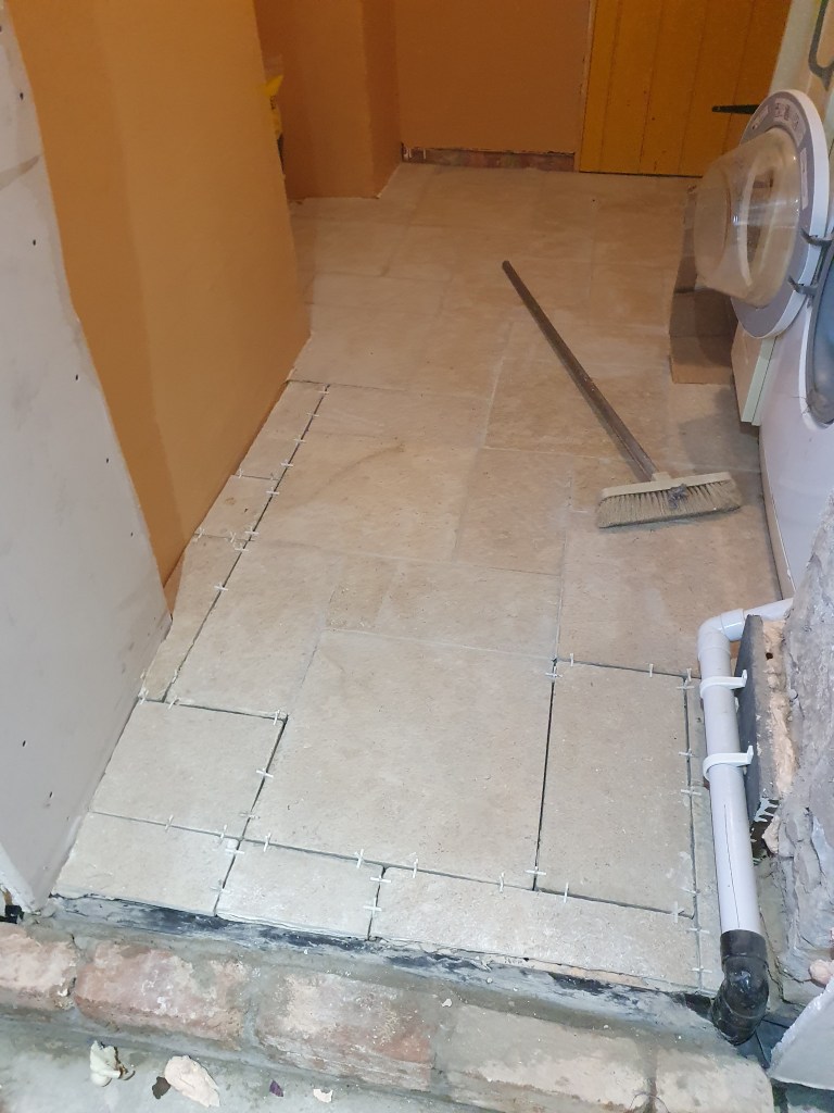 Chris has finally finished laying and grouting the utility floor, aside from the few by the door that needs replacing. Now we just need to add a wooden step to complete the look.