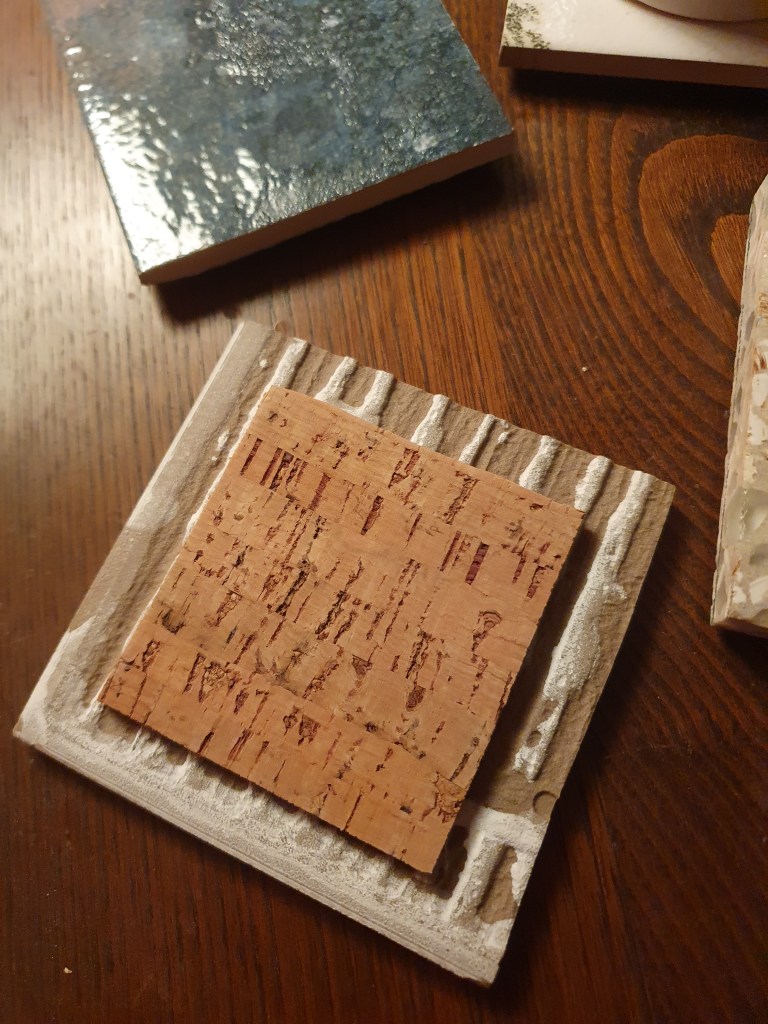 I was disproportionately pleased with myself for reusing the cork samples to create bases for some of our old bathroom tile samples, in order to repurpose them as coasters. I feel I could have made many more, but Chris pointed out there’s only so many coasters the two of us need.