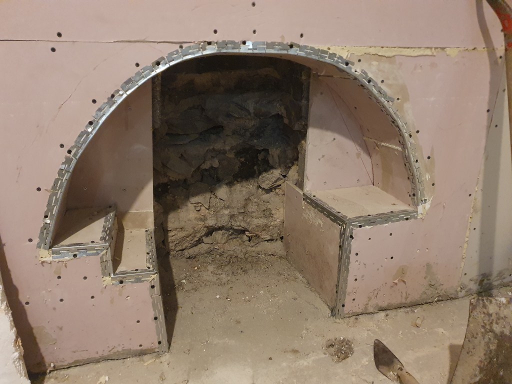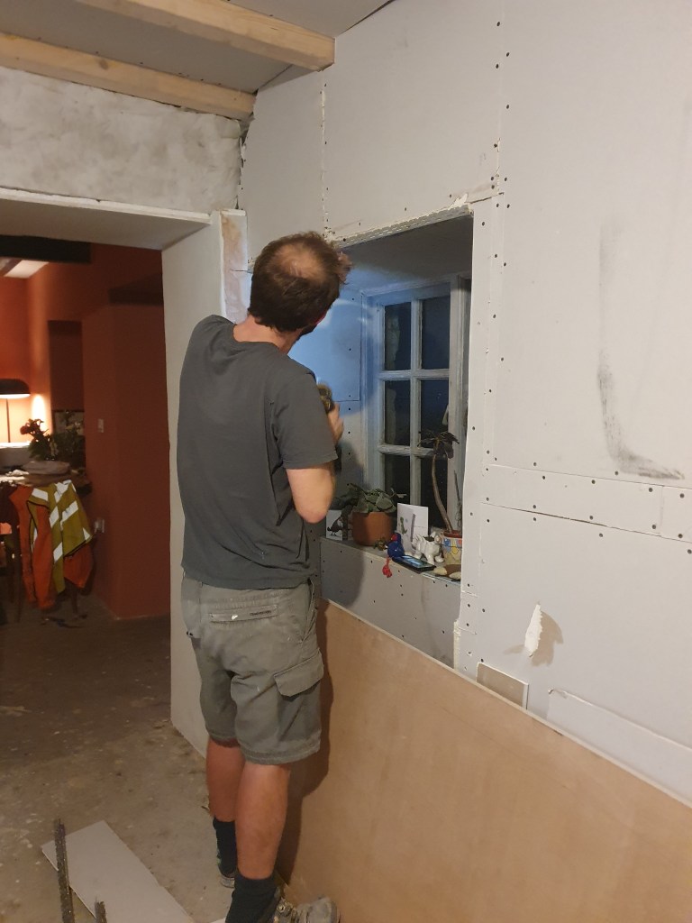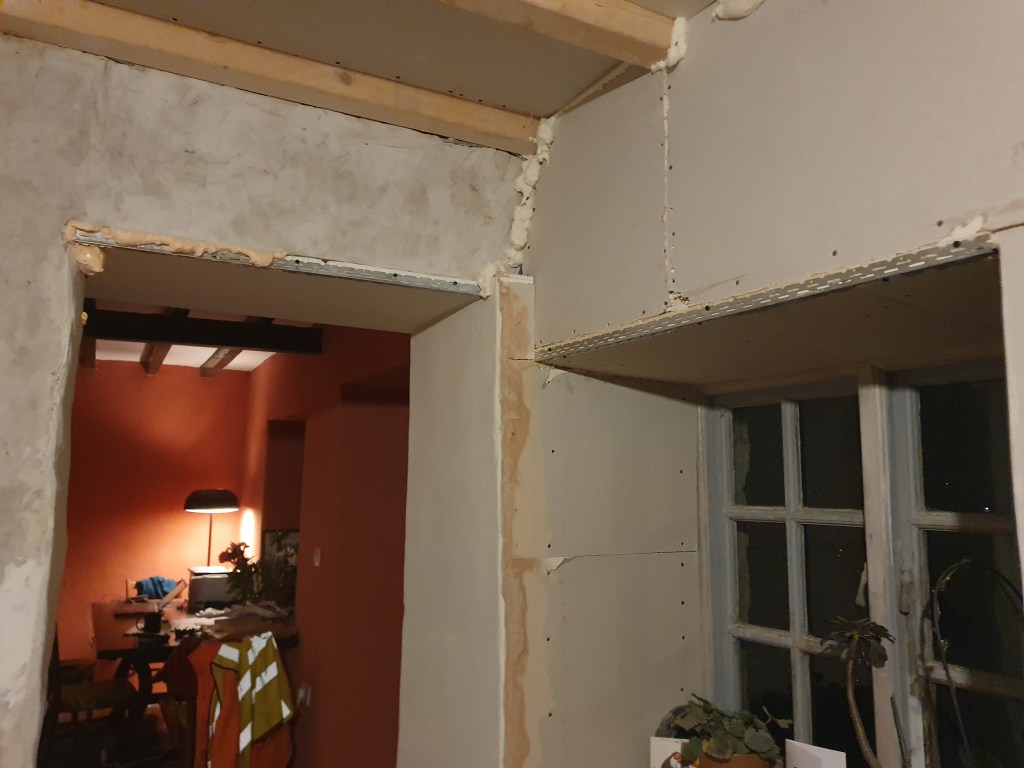 In the kitchen Chris has been getting on with all the various bits of edge beading, as we offered to get it done for the plasterer, to avoid him wasting time on it.