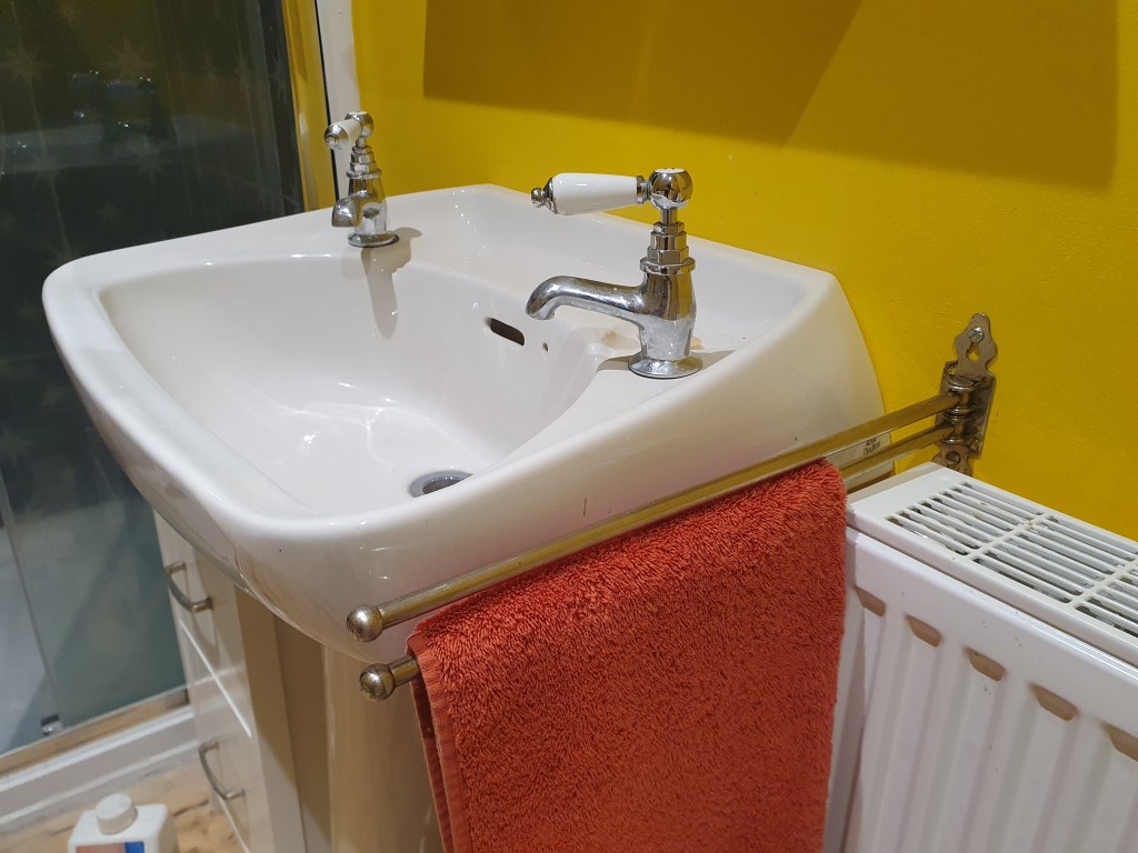 Inside, Chris has installed a hand towel rail and door handle, both a little bit vintage. The door handle came from the house, but the towel rail I brought secondhand.