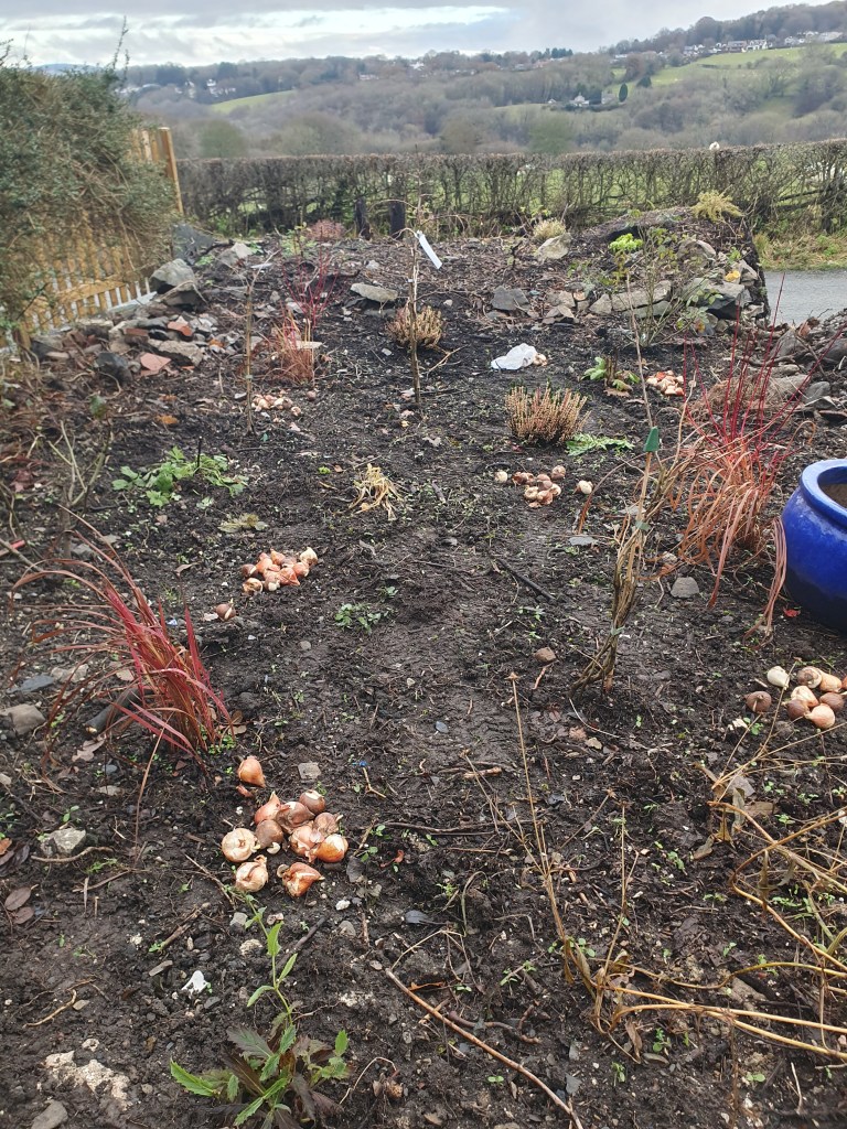 This week I’ve been planting 100 tulip bulbs. We planted some tulips in our old garden but they never really had enough impact, so this time I’m going big.