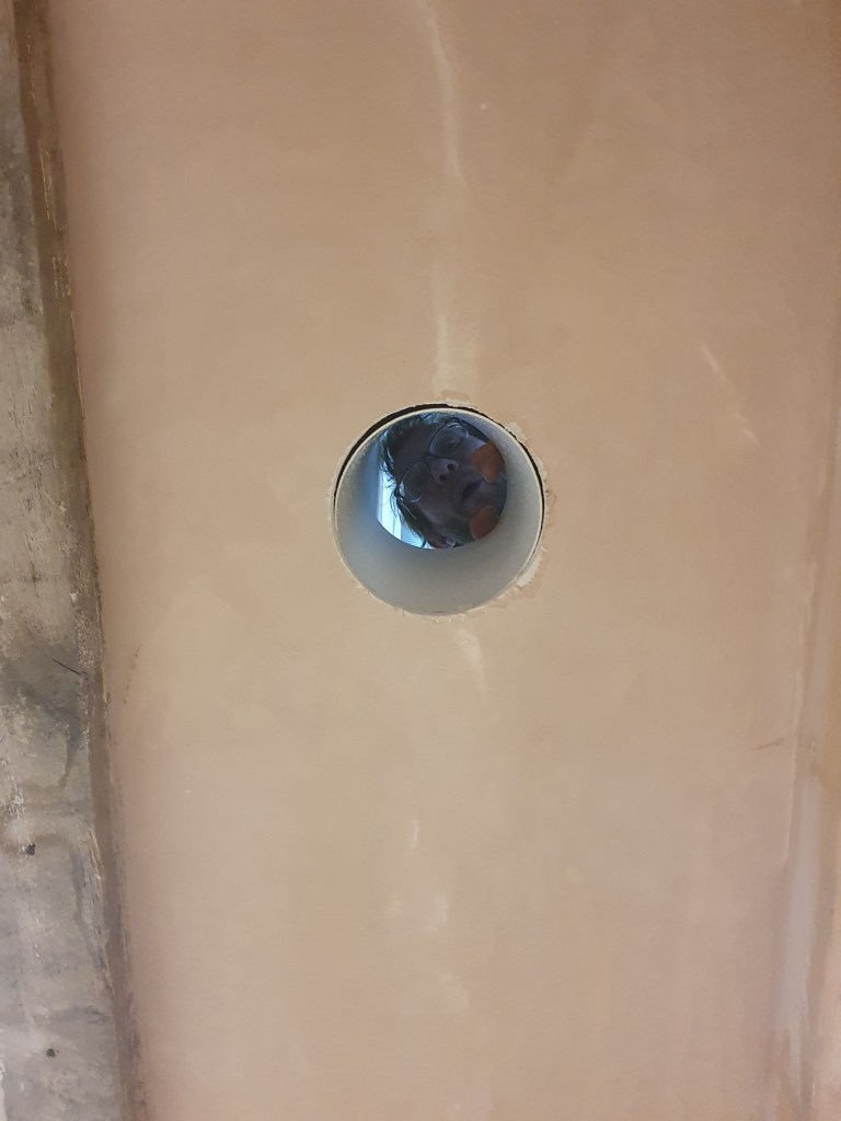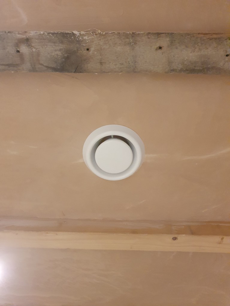 In the kitchen, Chris lined up the ceiling ventilation from the showerroom above. This was possible the trickiest vent to install as it had to avoid all the pipework and wires located in this piece of ceiling. One down, a fair few to go.