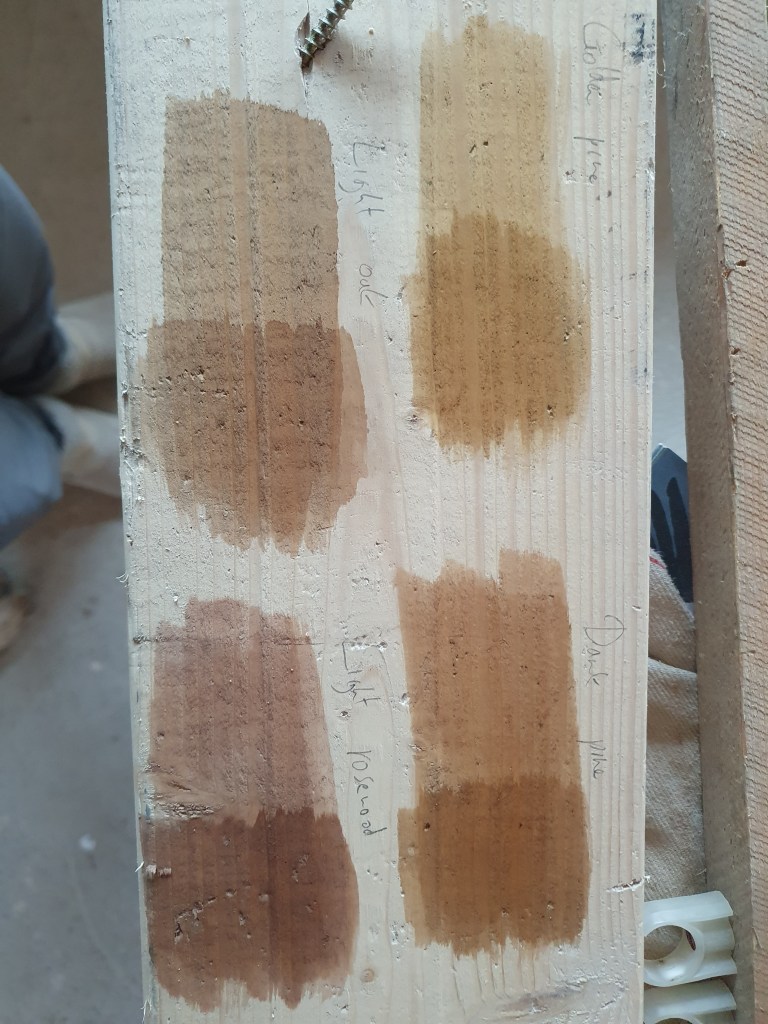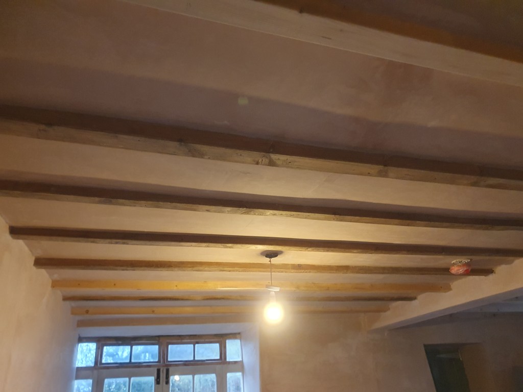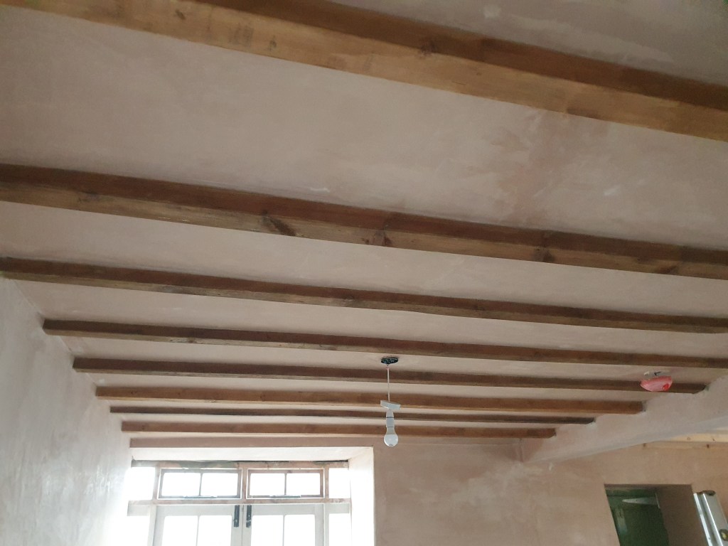 My big job for the weekend was prepping and staining the kitchen beams. It doesn’t sound like a lot but having sanded and cleaned all the beams and stained half, my legs, shoulders and arms are all worn out and full of aches. From constantly reaching above you, and getting up and down the stepladder, it’s like a full day aerobics class. Chris, looking at my newly stained beams, stated confidently ‘they’ll definitely need a second coat’…