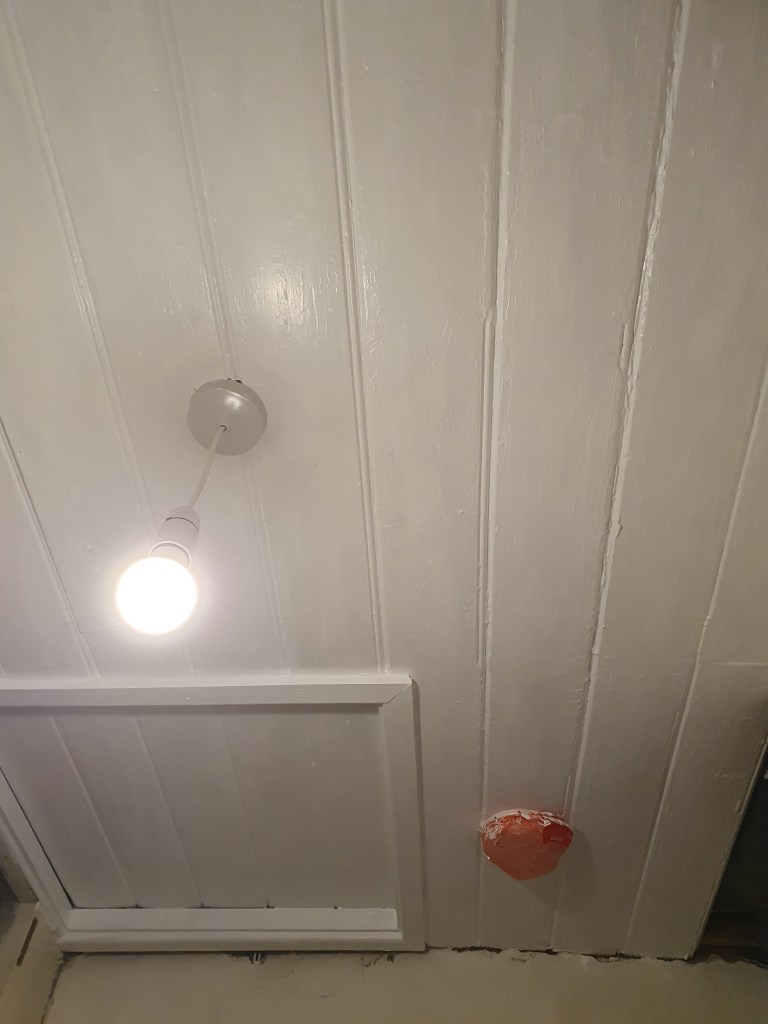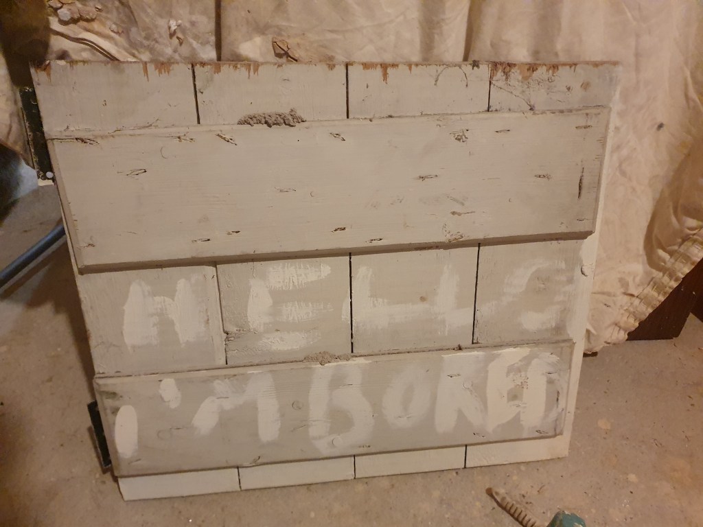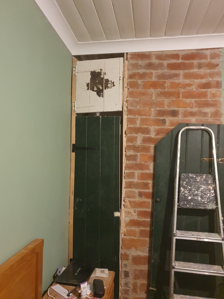 Rather than cut up a larger door I cut down the old over the stairs door to fit our cupboard. Still a bit of fiddling around to do before it looks less like a franken-cupboard.