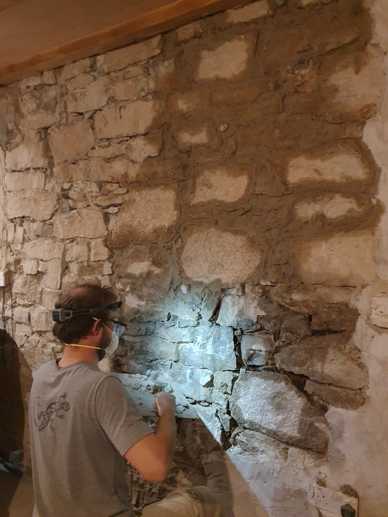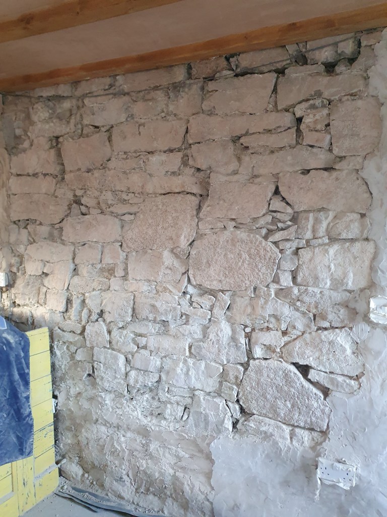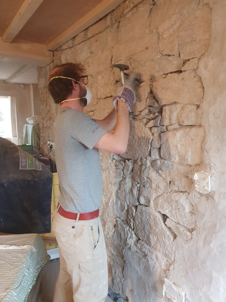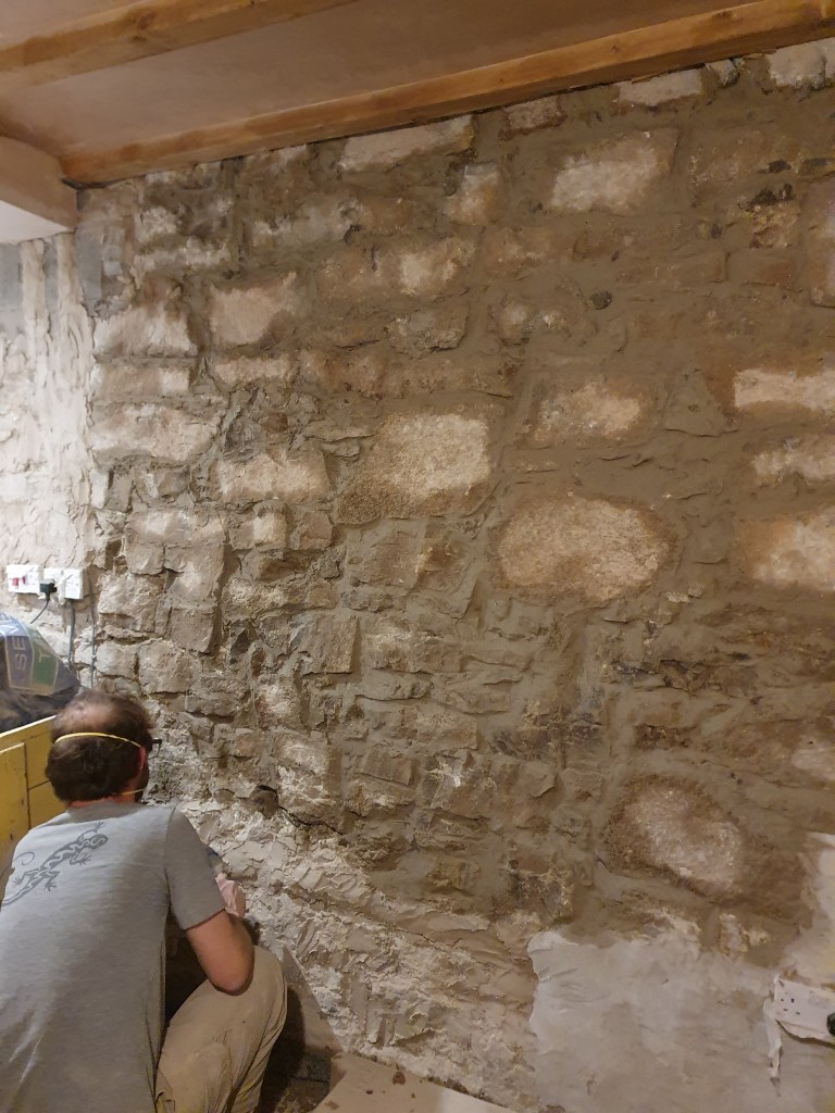 Chris didn’t have a particularly easy time of it either, finishing off clearing out the old mortar on the kitchen wall and repointing it. My mum had started this job, and after she left I thought I should finish it off, however the mortar has to be the toughest in the whole house. It was truly wrist breaking work. Since then I’ve been putting off getting back to it, so I was pretty happy when Chris decided to take on this exhausting job.