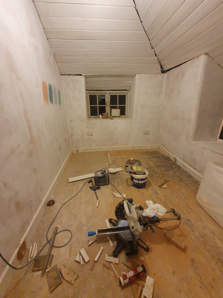 As the next job we’d been hoping to get the study ceiling done, however we realised we didn’t have the right wood to cover the gaps in the wood, or enough coving. Once those things are in place the room will just need painting. Some paint samples arrived, with some options for the study, kitchen and spare room. Painting colour on the walls is always a joyful moment.
