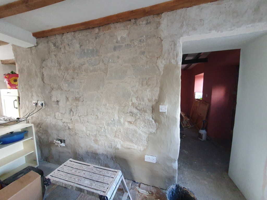 Finally moving on from the cupboard, I started putting the final layer of lime plaster on the edges of the kitchen wall. A slow processes I was still fairly convinced I might get it done in one sitting… when I ran out of lime. Another half done job.