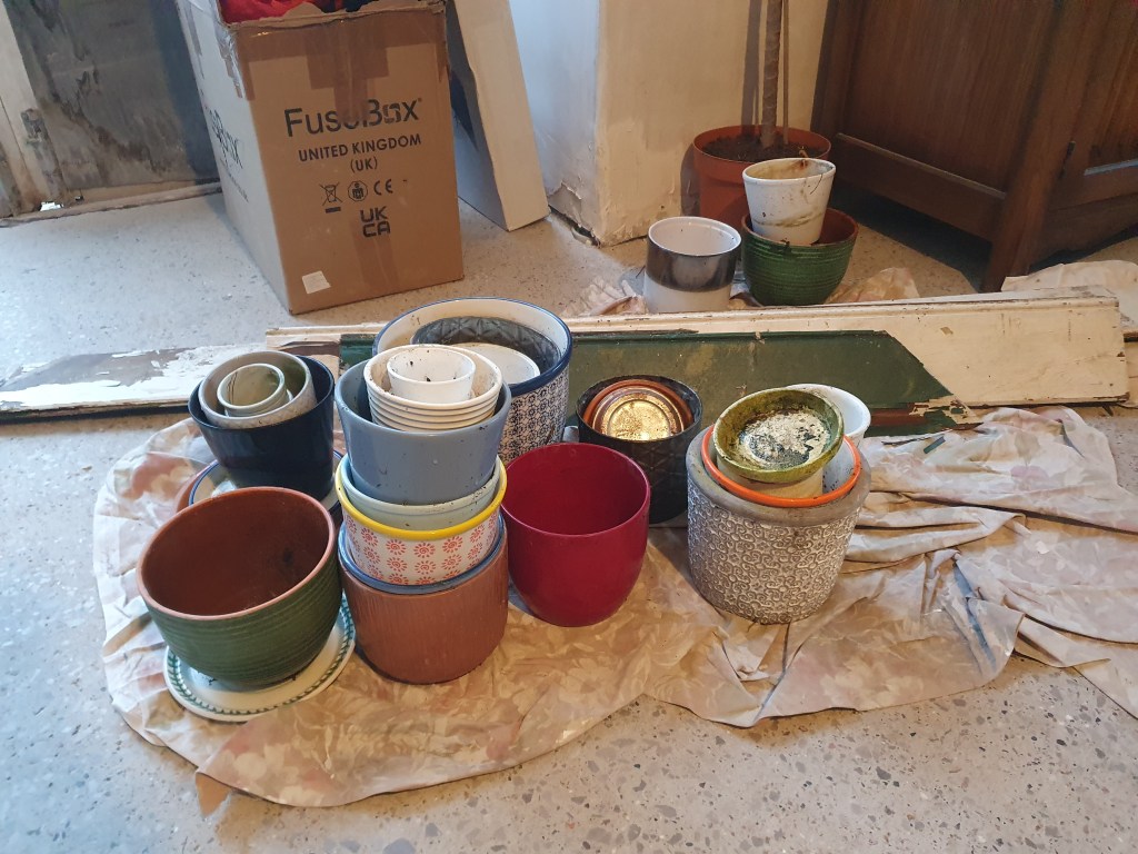Finally, I fetched the various pots and saucers we had outside. A few had succumbed to the ice but most are still fine. They need a good scrub before matching them up with our various houseplants.