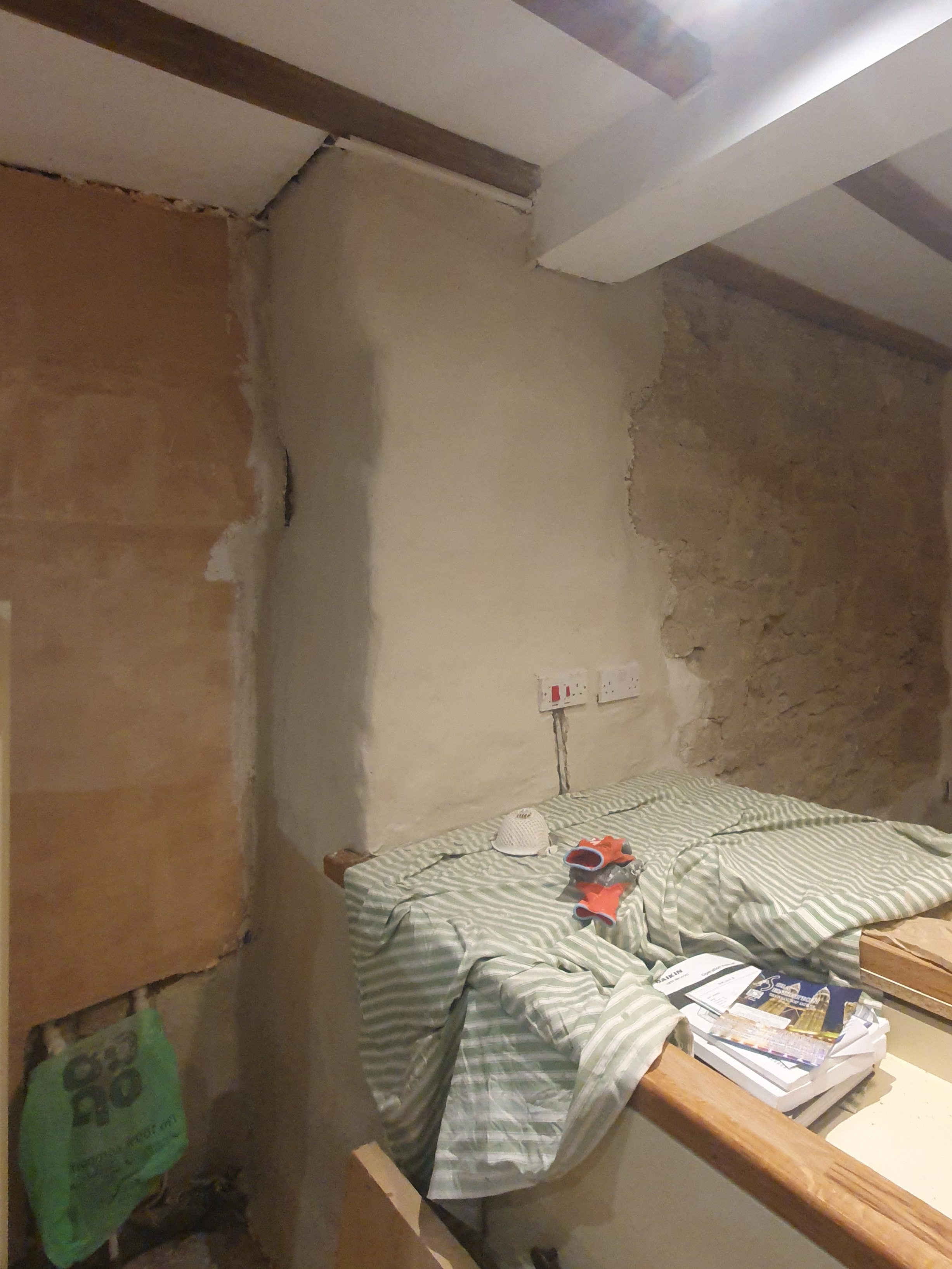 My first job was to finish the lime plaster on the stone wall. With the plastering finished the next job will be to fill the cracks and paint.