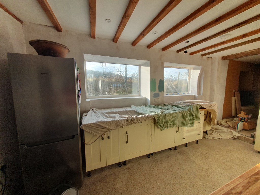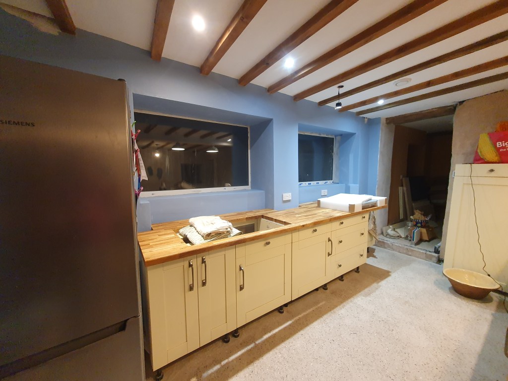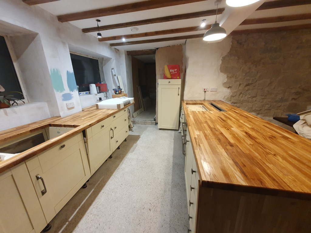 Before we disappeared for our weekend away Chris got the last coat of oil on the worktop, to allow it to dry by the time we got back. This will mean he can get in the hob and oven this week, and the sink after that. Having gone from the least finished room, the kitchen suddenly looks like it’s very close to being finished. Of course that doesn’t mean it’s time to pull back, lots more work to do.