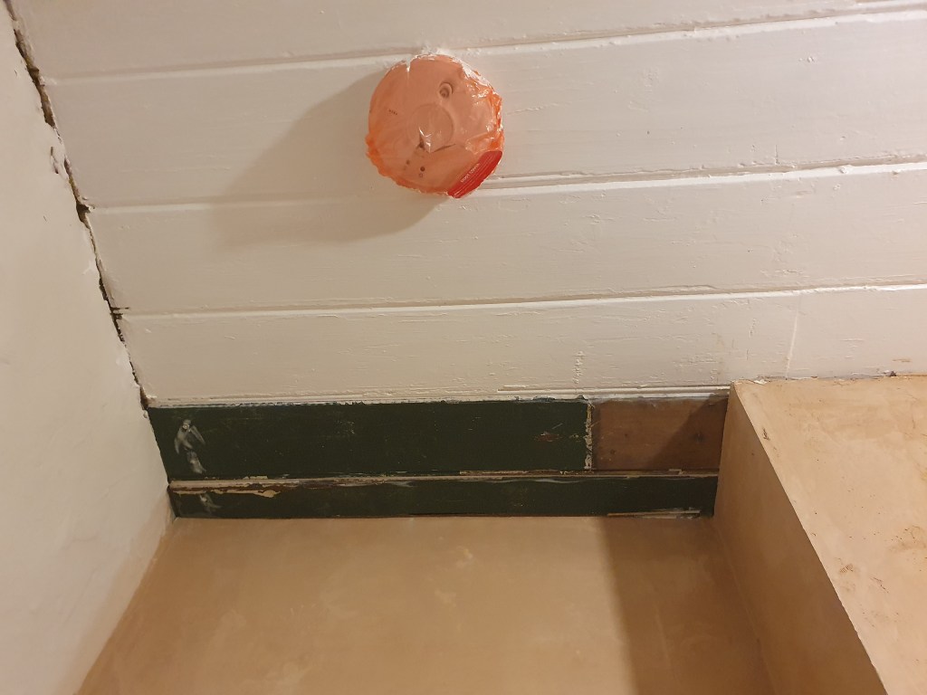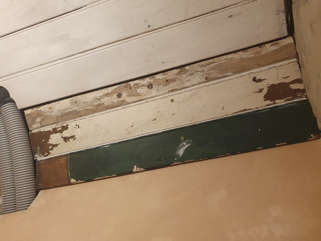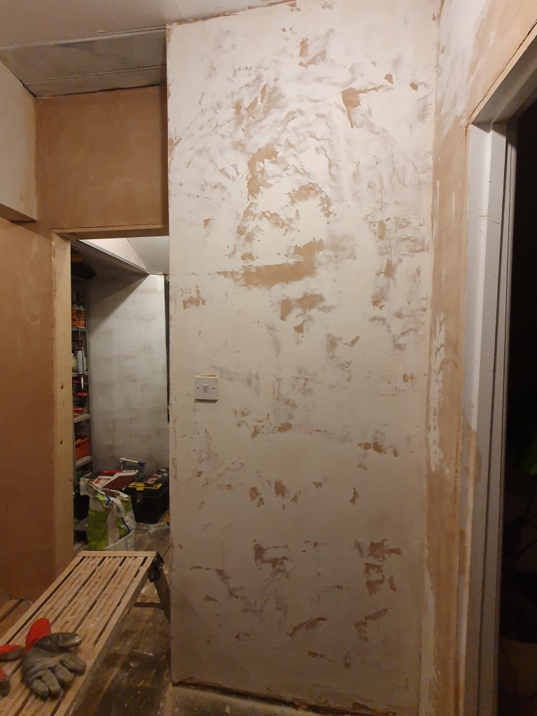 After plastering the landing, we realised we’d used the wrong type of plaster on one small section, that still had a layer of plaster on it. This had left a poor finish, so Chris used filler to smooth out the worst parts. I then sanded the filler and the plaster, before applying a watery coat of paint. I had planned to paint the landing white, the same as the stairs, but seeing the space now I feel it needs colour to pull together the various corners. I’ve got to decide what colour