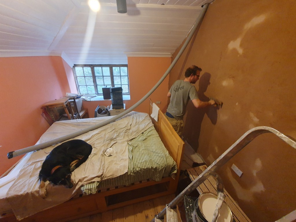 The fourth wall was now ready to be plastered, so Chris got to work putting on a couple of coats. This will hopefully be dry enough to sand and paint before our visitor arrives.