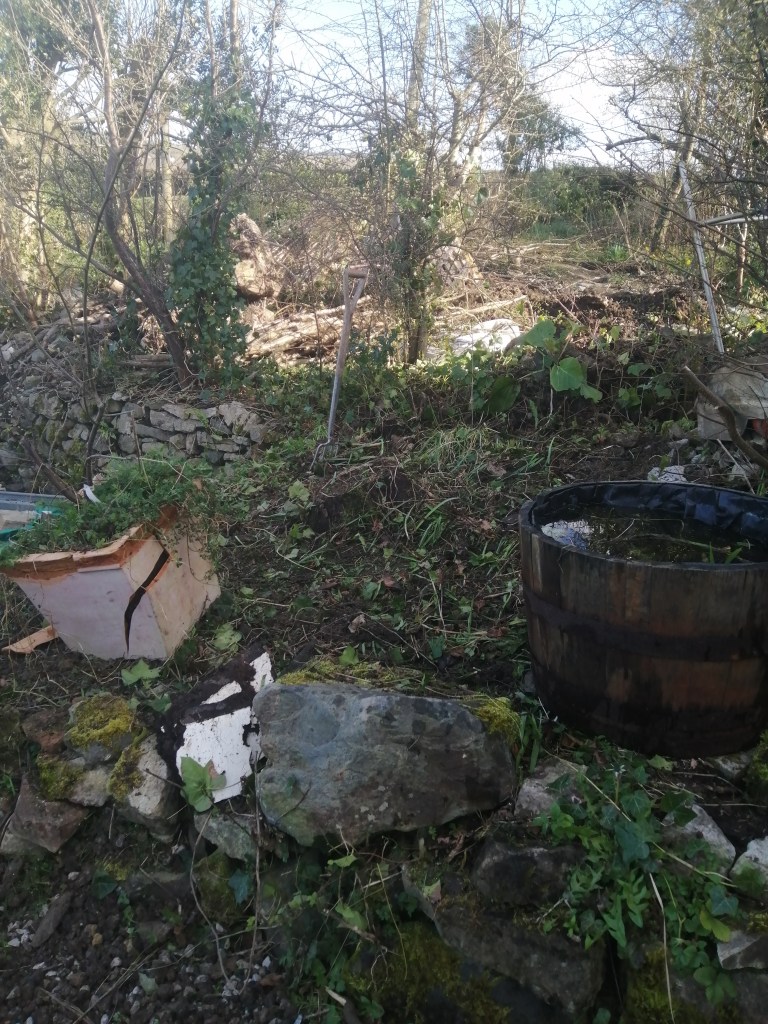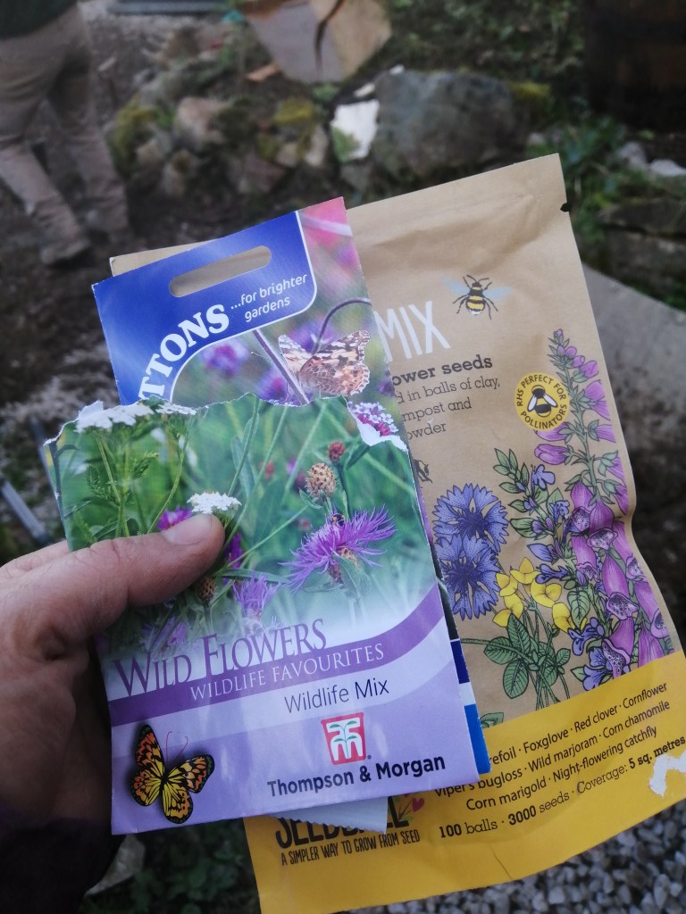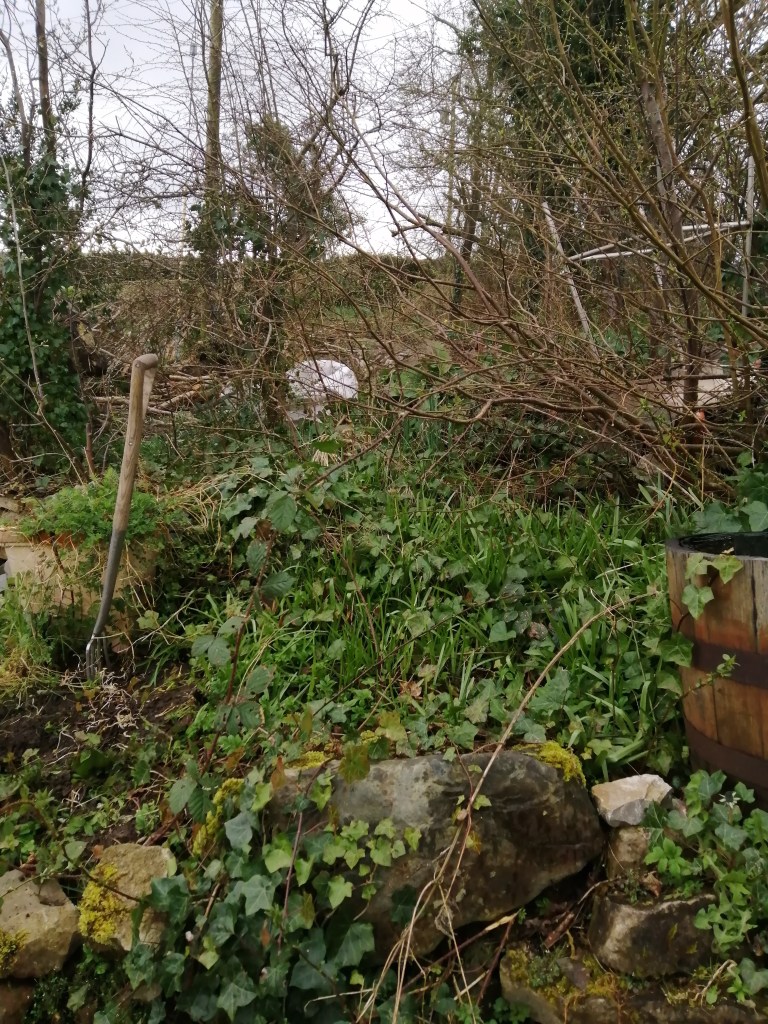 In between moving barrow-loads of soil, I had a go at clearing a small section of the front garden to sow some of the packets of wildflower seeds I got for Christmas. The patch of ground was largely taken over by saplings, ivy and bluebells. While we want to keep bluebells in the garden, most of them are hybrid Spain ish bluebells, rather than our native species, long-term I’m hoping to dig out any non-native plants and just leave the native ones, but for now I’m hoping digging over the bed a little will give the native wildflowers a chance to grow, and then the bluebells will pop up in between.