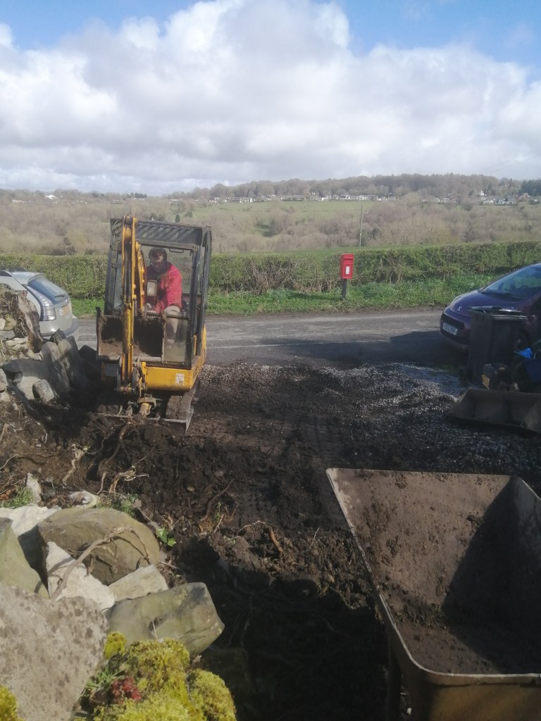 Chris’s final job of the weekend was to take down a small dead ash tree. There’s a few more trees he’d like to remove, but he felt this was the most urgent. While he was busy Idris decided he might have a go at digger driving. He’s a natural.
