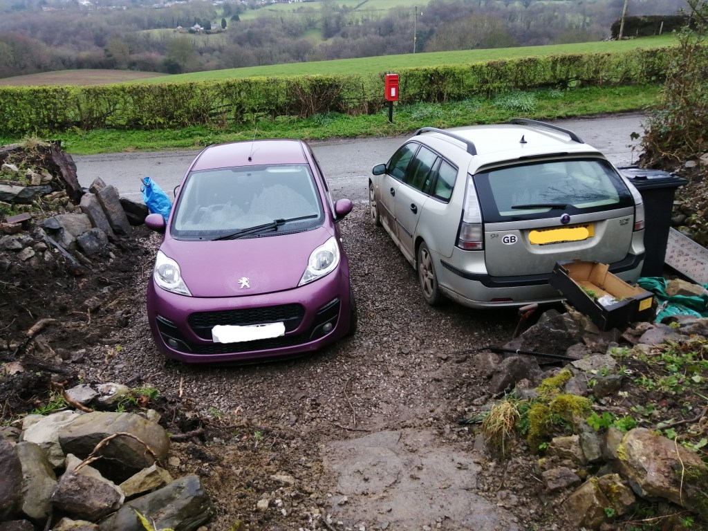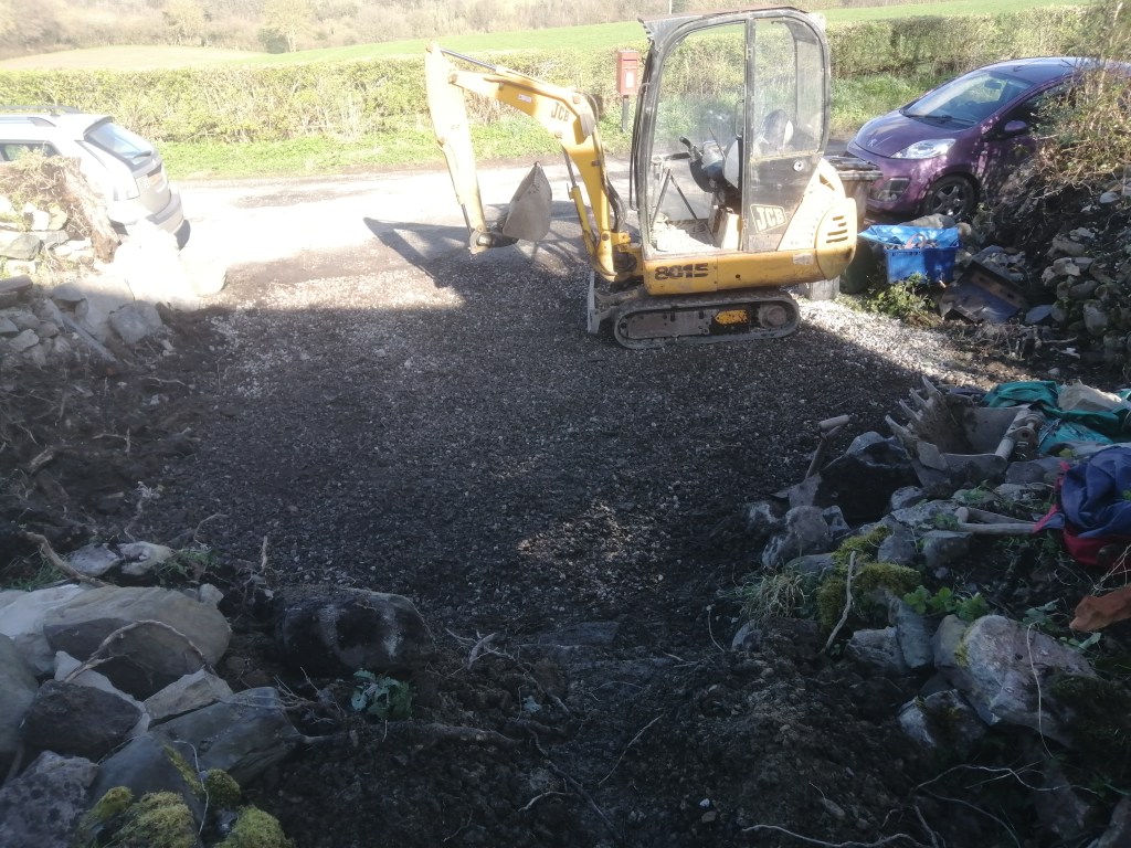 Our big job on the Sunday was to finally finish off widening the drive. Although we already moved most of the soil banked up beside the drive, Chris was keen to try and flatten it as much as possible now one of our neighbours had lent us a mini digger. Chris used the digger to fill a wheelbarrow and I huffed back and forth to the pile of soil in our back garden.