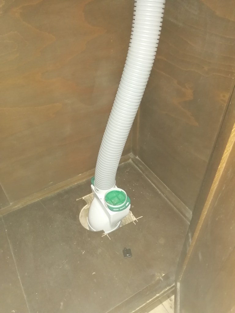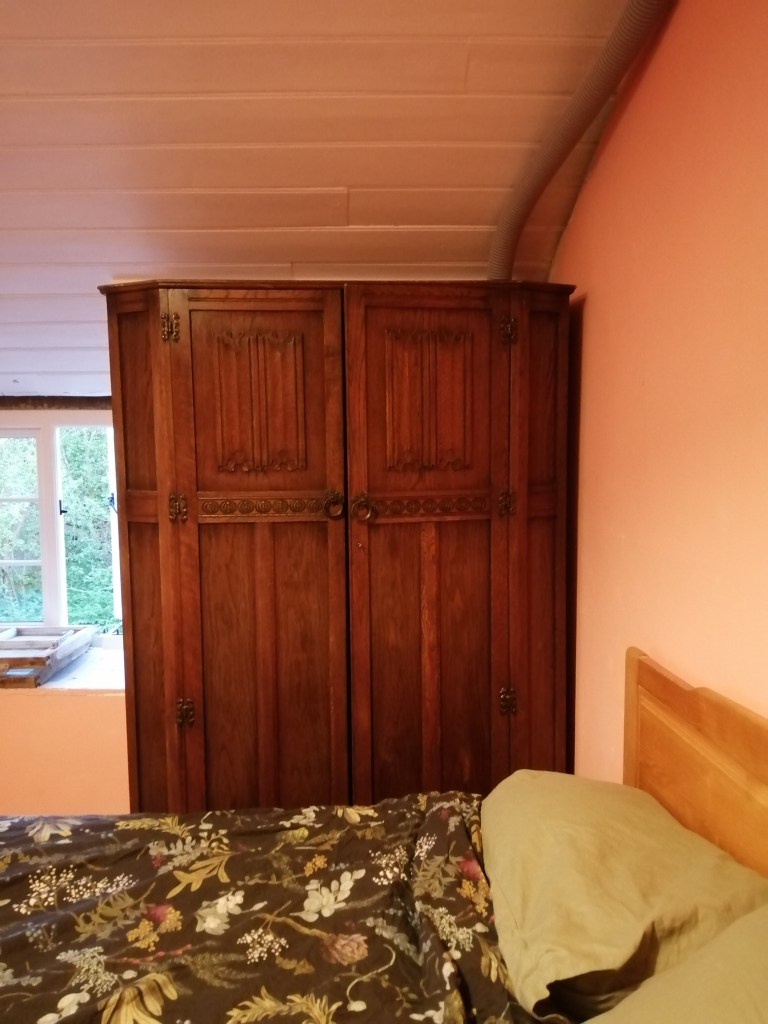 In the spare bedroom Chris cut out a hole in the new cupboard, so we could thread the ventilation pipe through.