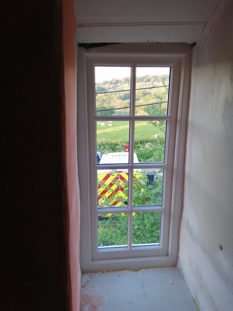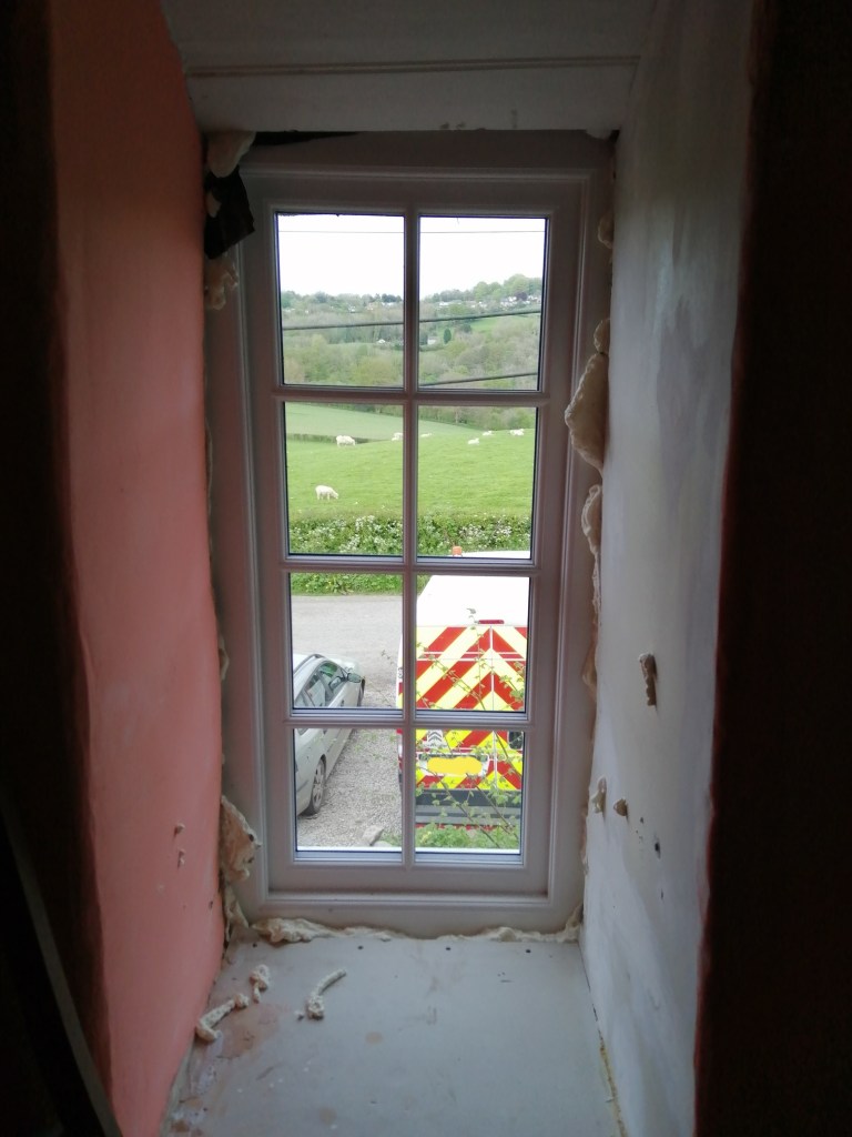 But the week wasn’t all staring at the sky in awe. One tedious job was filling the gap around the windows inside with expanding foam, cutting it back, filling and sanding it. The bottom didn’t need filling as the windowsills will hide it, and Chris told me not to do the tops for now… Only to turn around and ask why I hadn’t done the tops….
