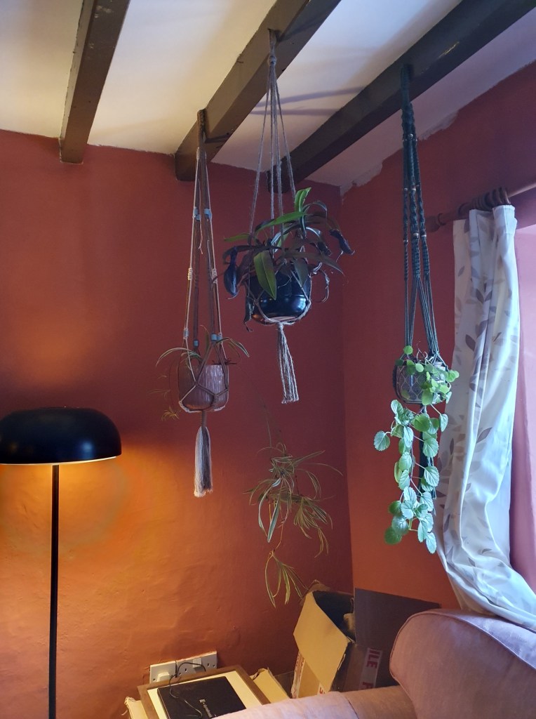 Becky had previously made us a plant hanger, and another had been bought for us by Chris’s cousin for Christmas. Chris requested that Becky make us a third to complete the set, which she obligingly did.