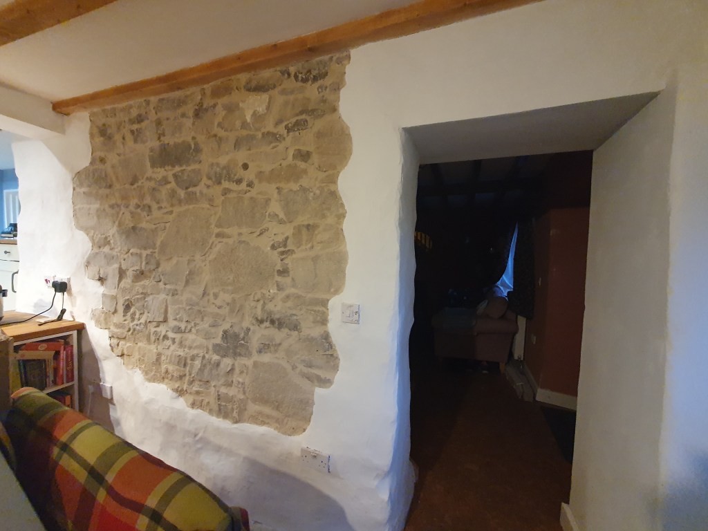 The plaster surrounding the stone wall had never been painted, so that was nice to do. However, being a small area I convinced myself it wouldn’t take long. Because of its rough uneven surface the whole thing had to be done with a brush, making take an age.