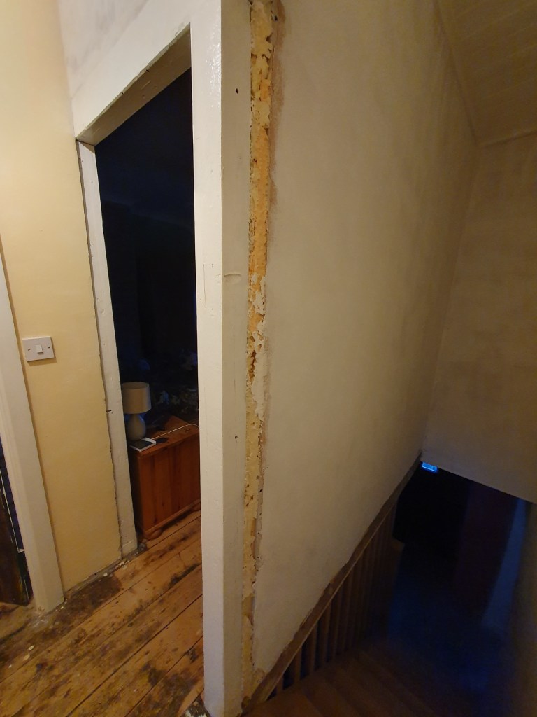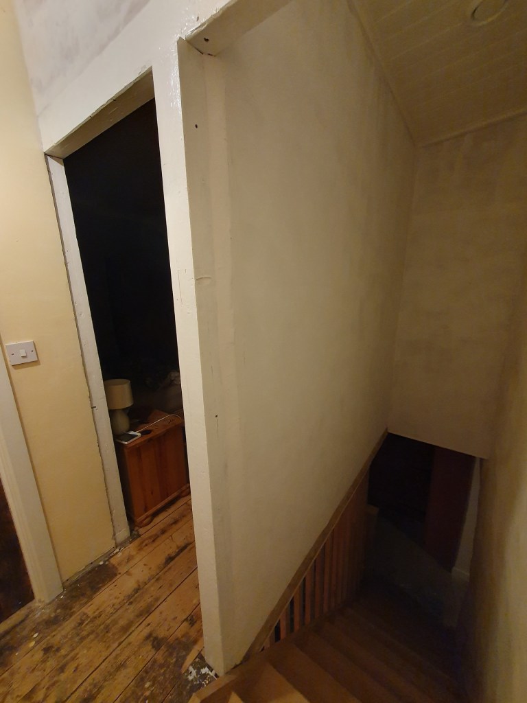 Inside the house, there was some little bits of plastering to do, including behind the piano where we’d moved the radiator, and at the base of the landing wall. Nothing exciting but making things ready to paint.