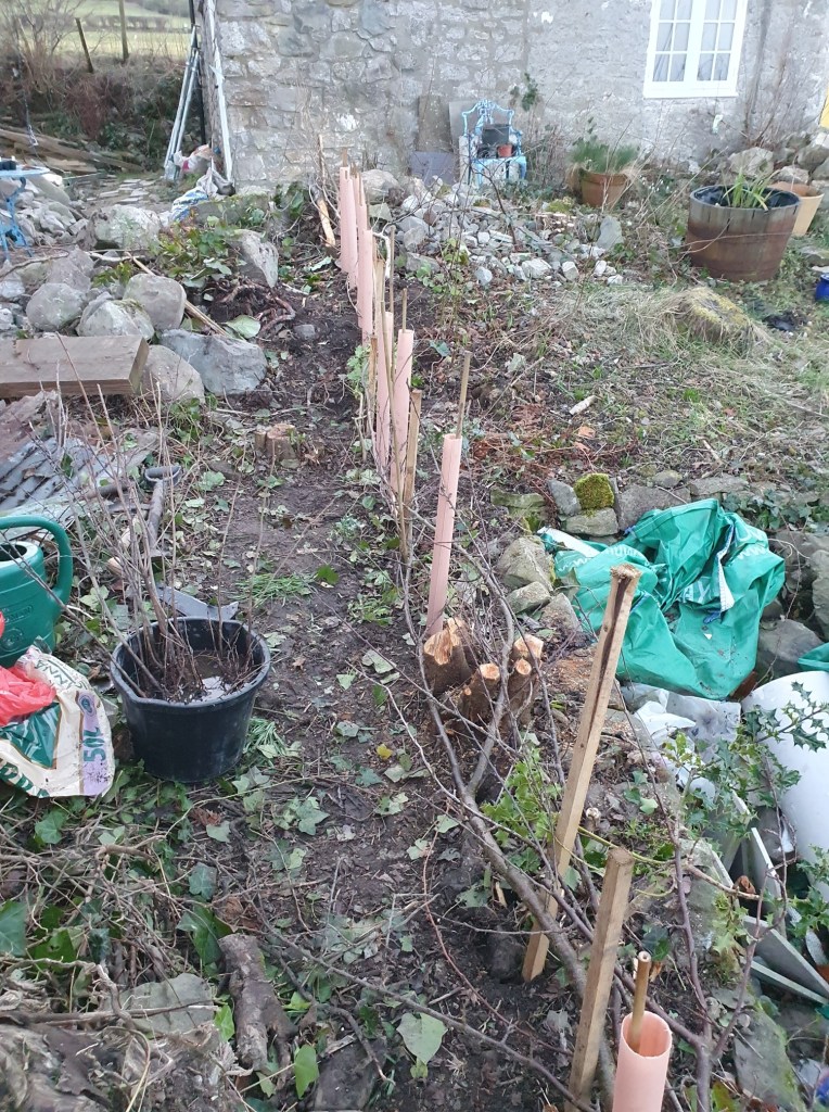 Before we got too far into spring I wanted to lay a line of hedging at the back of the house. To give me a hand my friend Monika joined me to learn the ropes. This section makes up roughly half of the hedging at the back of the house, but the other half sits on top of a 0.5m wide bank on top of the crumbling walls of the old toilet block. While I would like to do it at some point it’s going to be a fiddly balancing act, and I didn’t fancy it this time round.