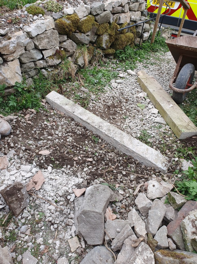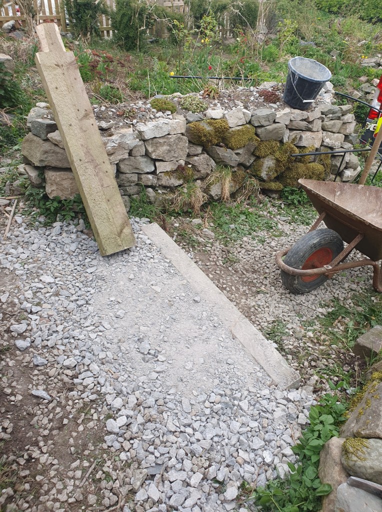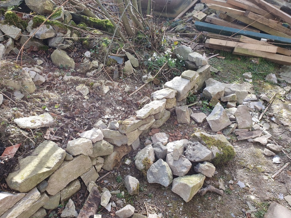 Now the spikey blackthorns were out of the way, I tidied up the drystone wall and shifted a pile of stones off the bed to allow the wildflowers a chance to grow.