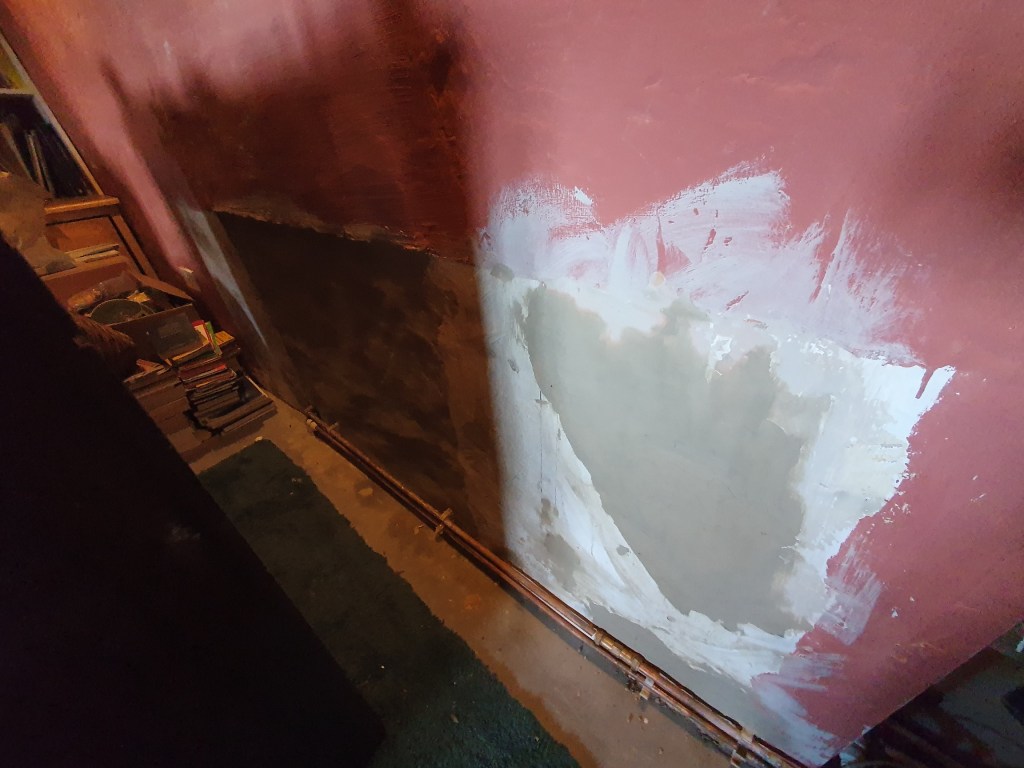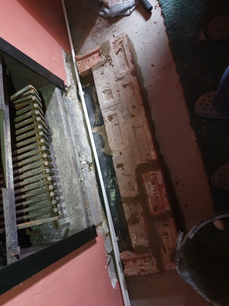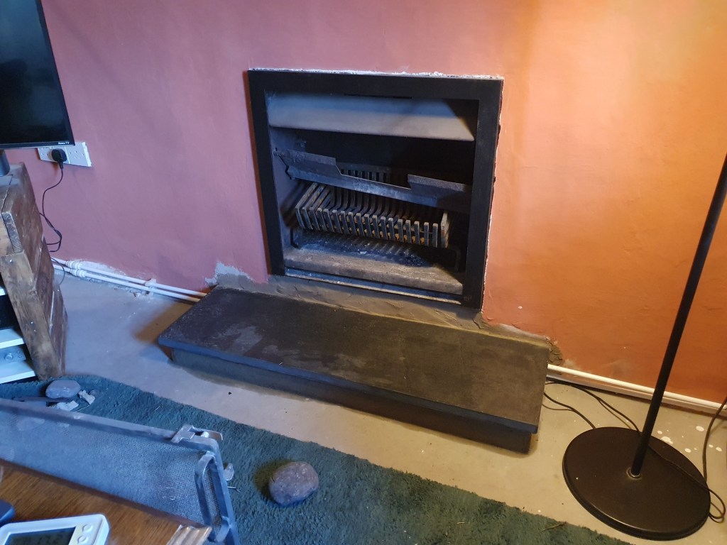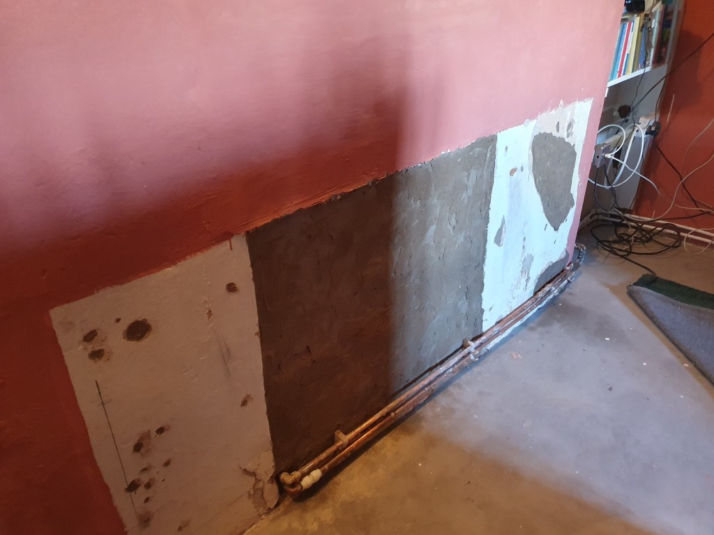 I’d previously laid the pipe to the new location under the window, the other side of the room, so we just had to cut the pipe and take the radiator off the wall. The plumber had attached it to a back board because he struggled to screw into the wall. Behind it we still had the exposed brick, where we’d filled in the old doorway. I plastered this with a lime plaster. It will just need a final coat and a touch of paint and it will blend in with the rest of the wall.