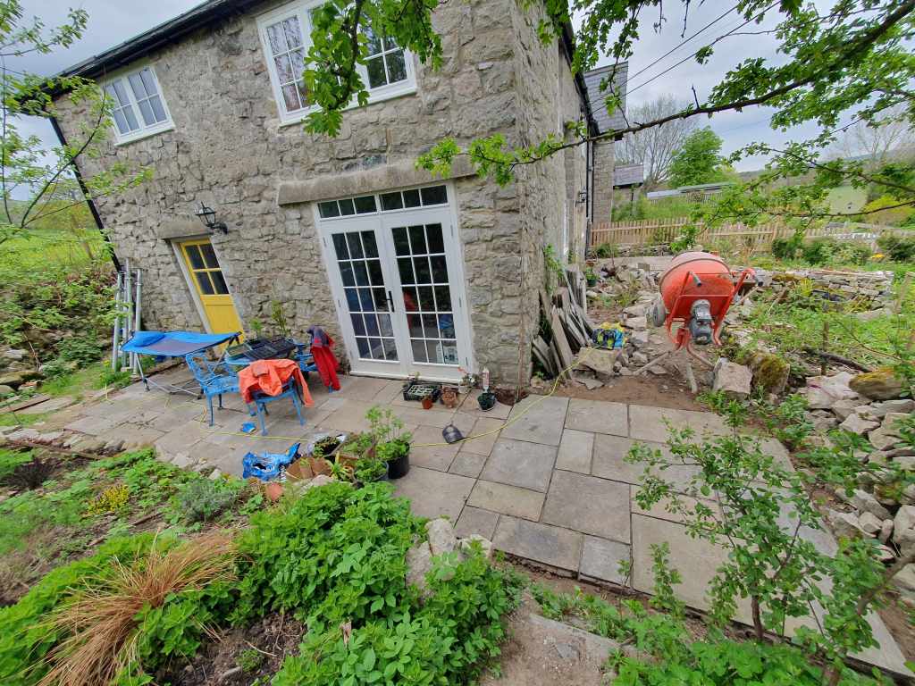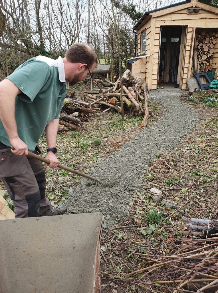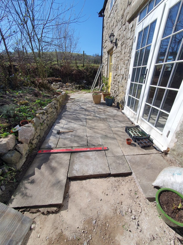 With the good weather it seems destined that we get on with jobs outside. Chris’s brother had kindly lent us his cement mixer to do the shed base, and we’d kept hold of it in the hope of getting the patios done before he needed it back. However, the time has come when it needs to return to its owner, so we decided we’d better get on with laying our slabs.
