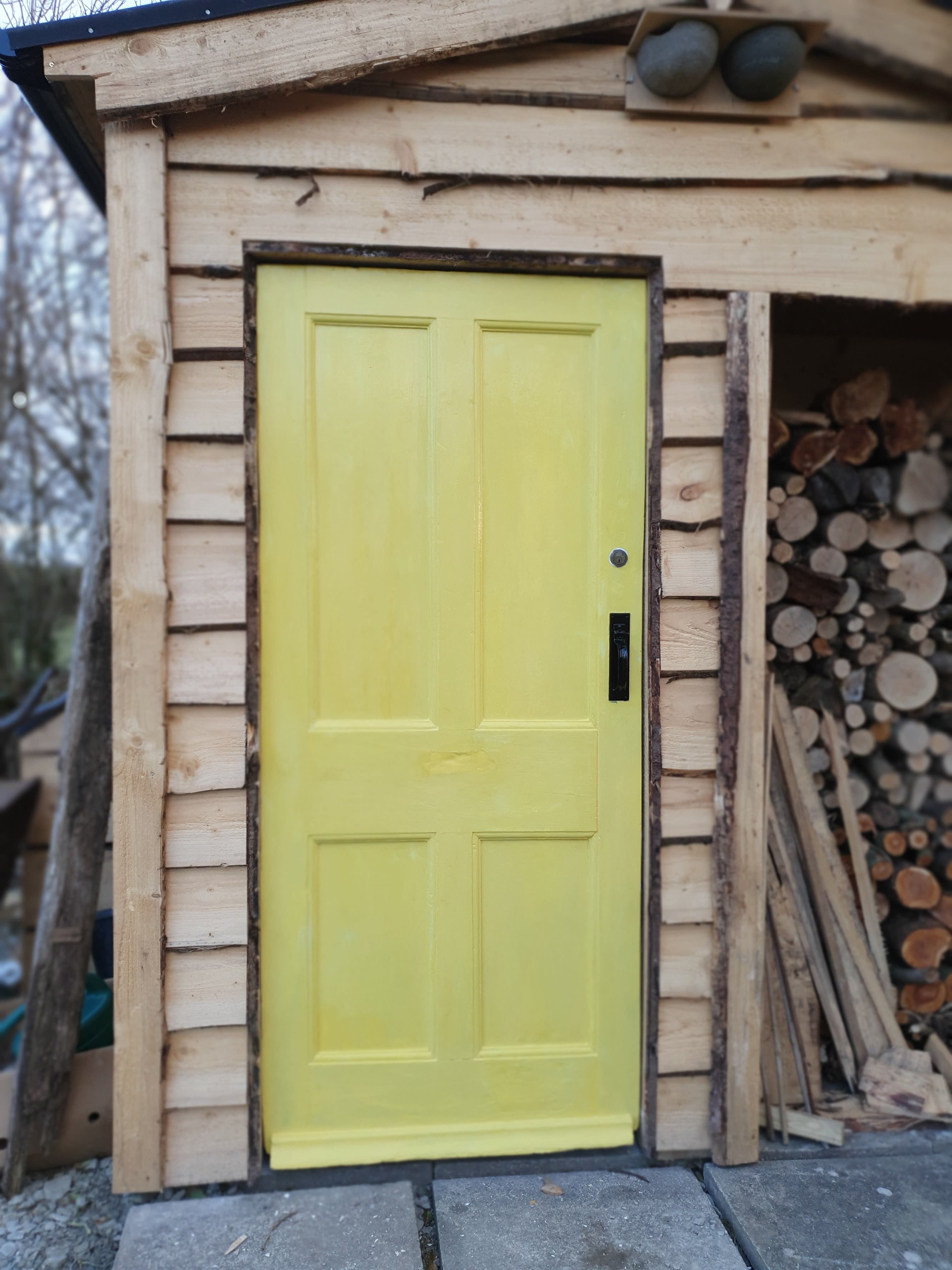 In the garden, Chris requested I paint the frames of the old windows, and fill and paint the old door. It’s need another coat to make the yellow a little richer.