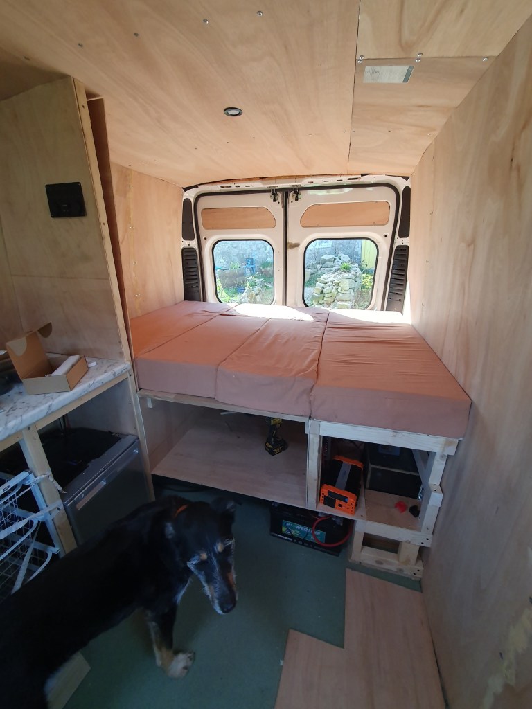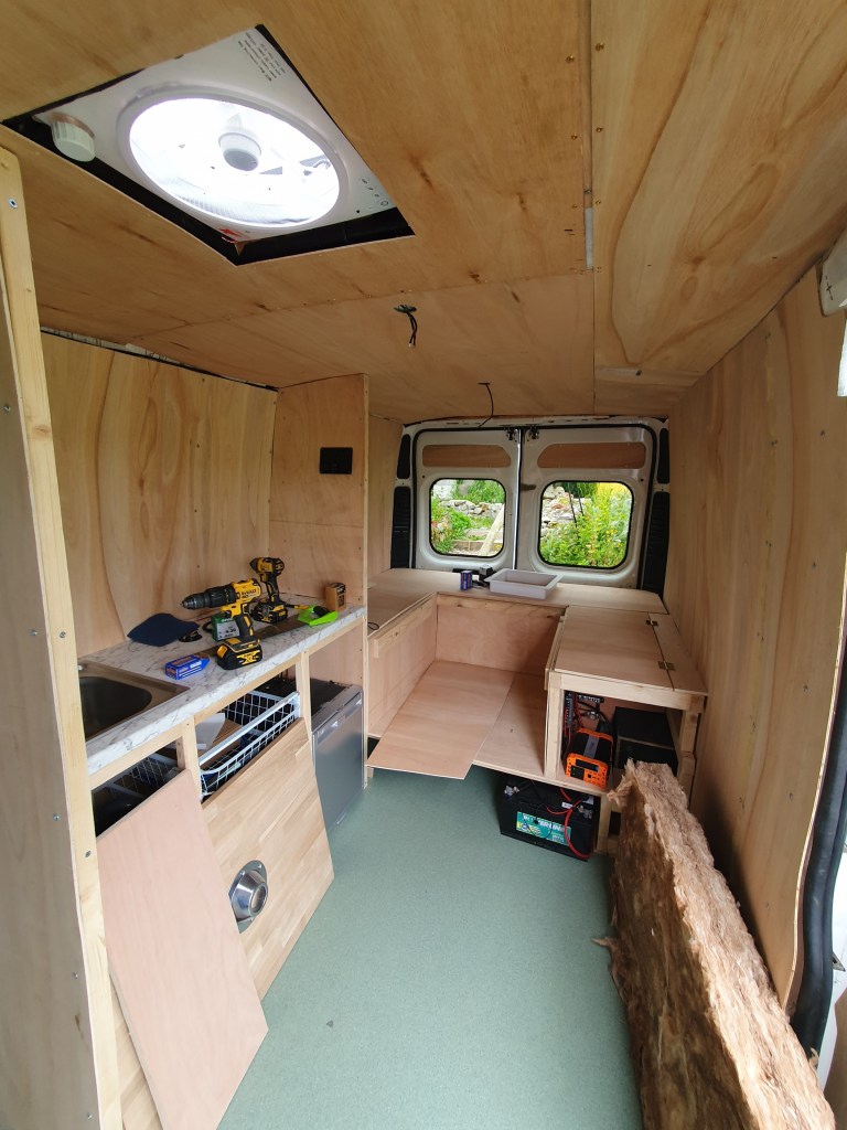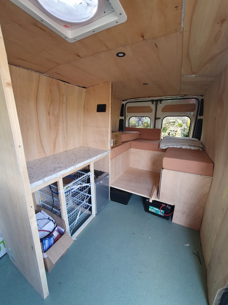 In the end we left with a van with running water, electrics, a bed and a camping stove. All functional, though a little rough around the edges.