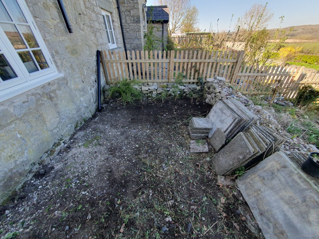 We dug out some small tiles which covered part of the area and put them to one side for future use or sale.