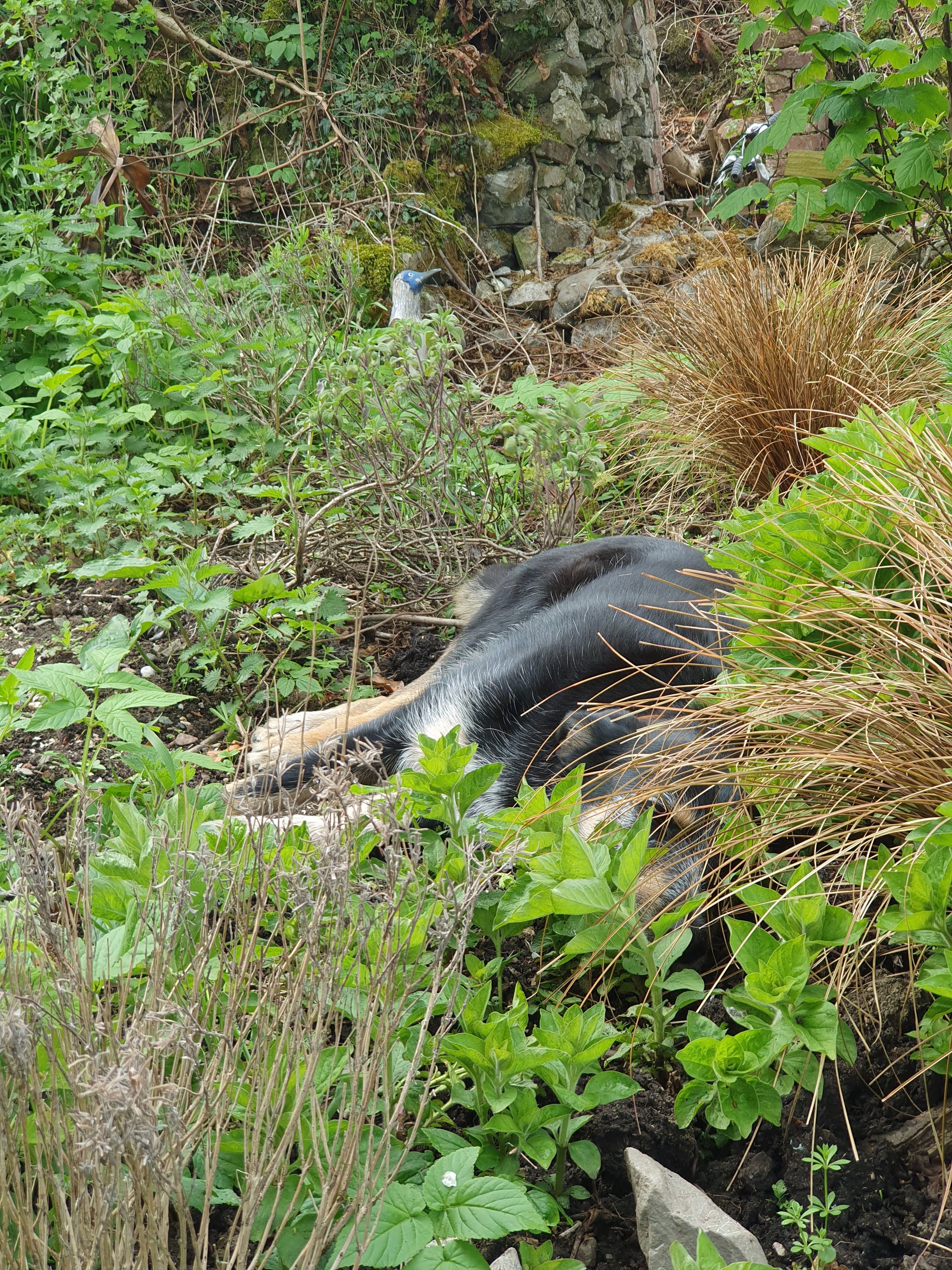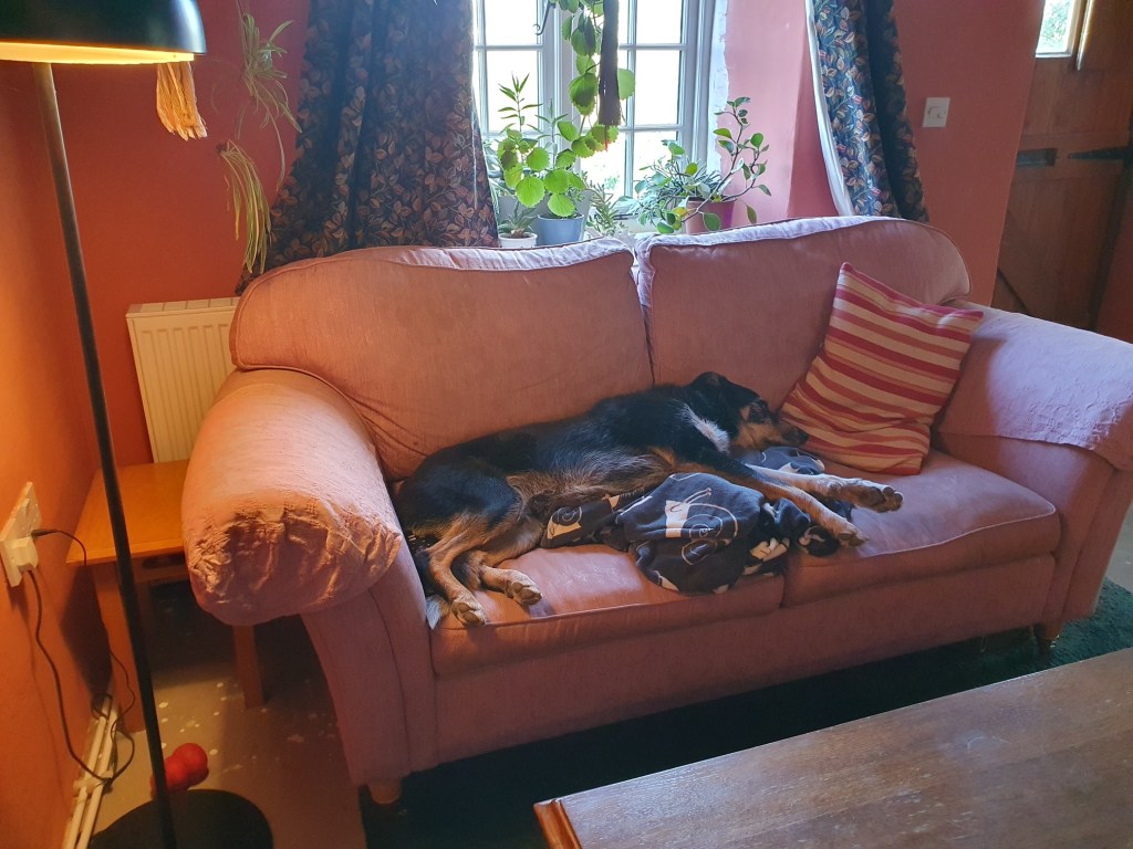 The garden is really growing now, with plenty of tulips coming up, along with lots of selfseeded primroses, cowslips and red campion. We even seem to have a selfseeded black current bush. It’s all looking a bit wild and Chris is desperate to get on top of it, but I want to finish the inside before we worry too much more about the garden. Idris likes it as it is anyway.