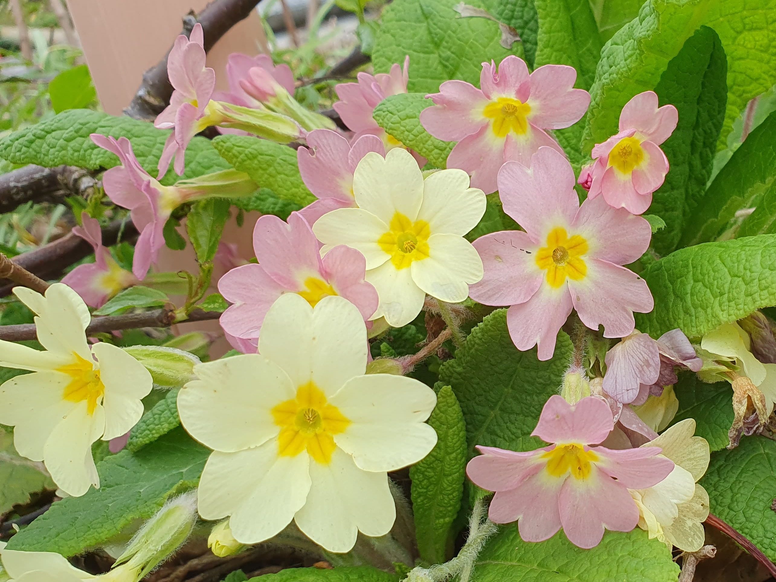 In the garden the tulips are appearing, and a large number of self-seeded primroses. We’ll split and move the primroses once done flowering, and they should multiply and spread.