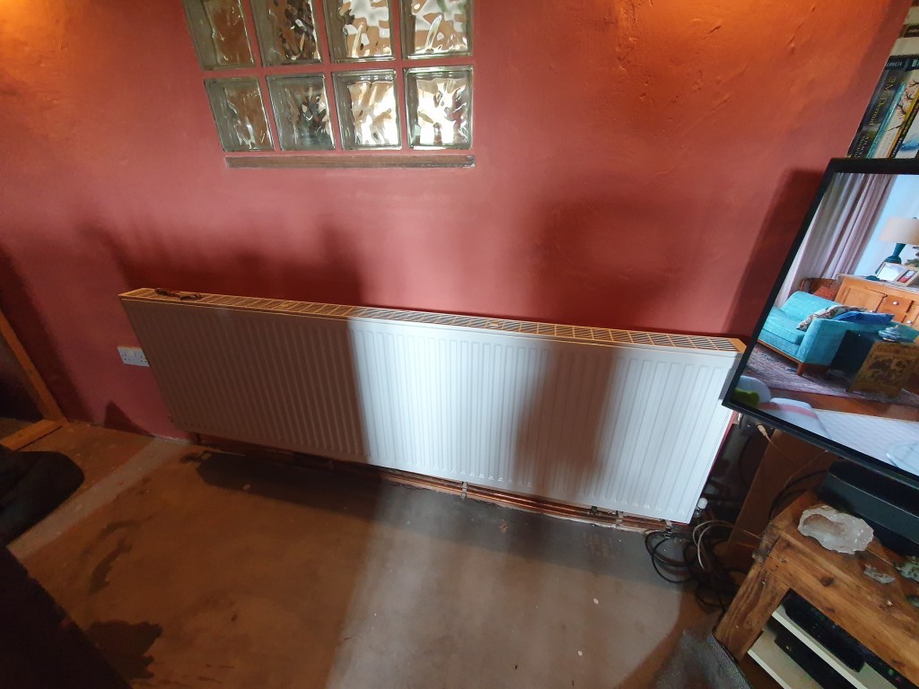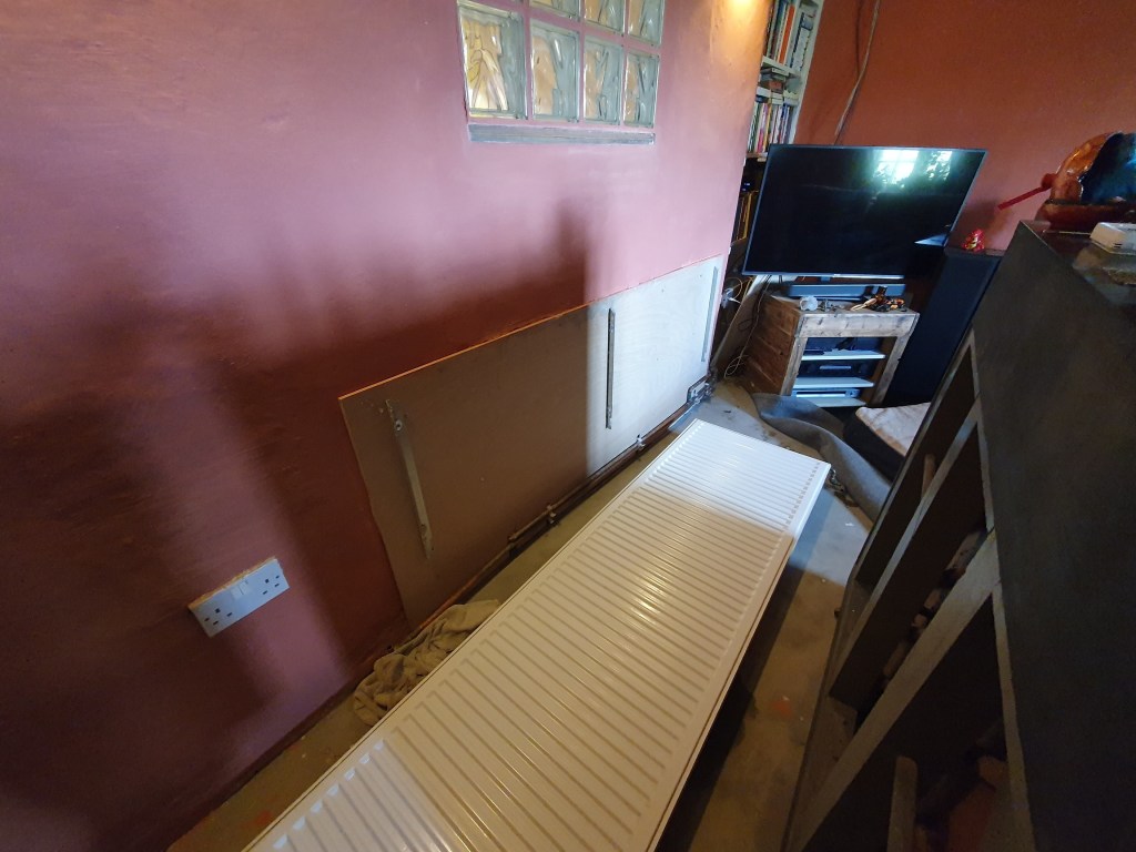 The radiator for the lounge was put along the wall which used to have a doorway into the old kitchen. With the stairs, fireplace and doorways on the other walls, it seemed the most sensible place. However, we soon realised it dominates the room and stops us being able to put the piano in the right place.