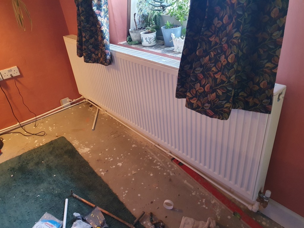 We were very lucky to get an Eco grant for our heating system when we first got the house. However, because the grant came so early in the renovation we didn’t always know how we were going to set up the rooms. Now, using the rooms, we’ve found two of the radiators are in the wrong place. Moving them is a pain, meaning draining the system and cutting and moving pipes, but we decided to go ahead as it will make the rooms more useable.