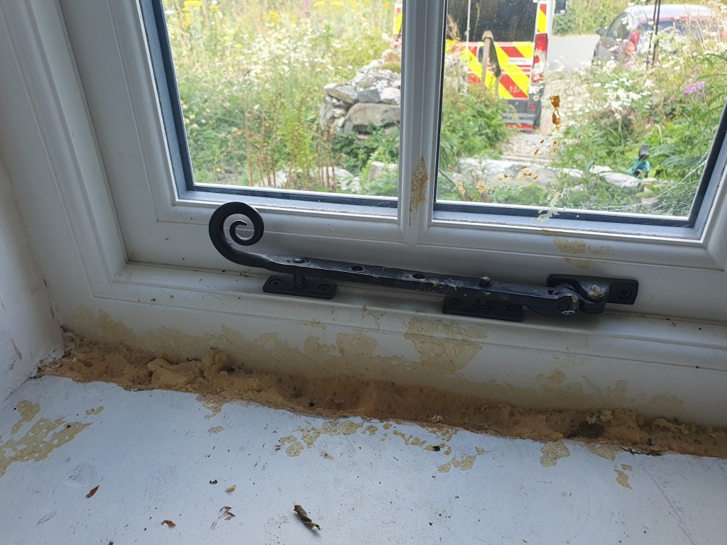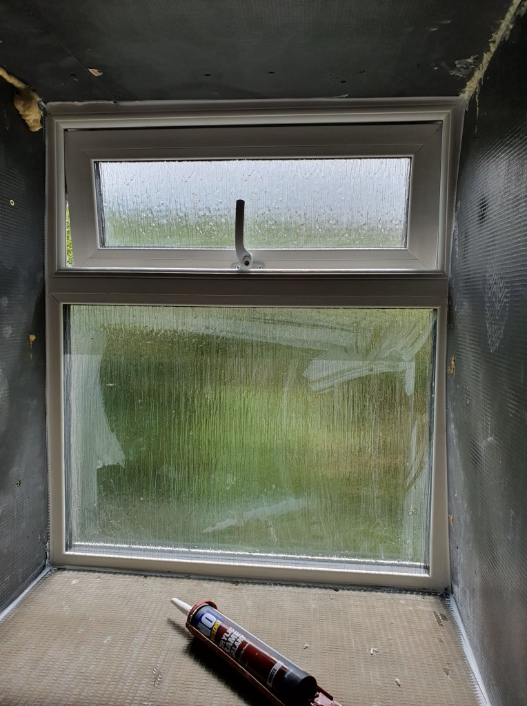 A job we’ve been putting off for ages is cleaning and sealing the windows. This is because I’ve tried a few different hacks to clean off the expandy foam marks and nothing worked. However, after some research online, Chris found some expandy foam cleaner. It worked a treat on the PVC windows, and we quickly got those cleaned and sealed. However, as we suspected, it peeled off the paint from the wooden windows. Annoyingly this means we’ll need to sand and repaint the wooden windows, a rookie mistake not to fully mask them before filling with expandy foam.