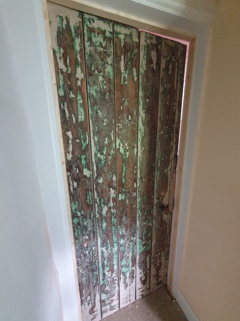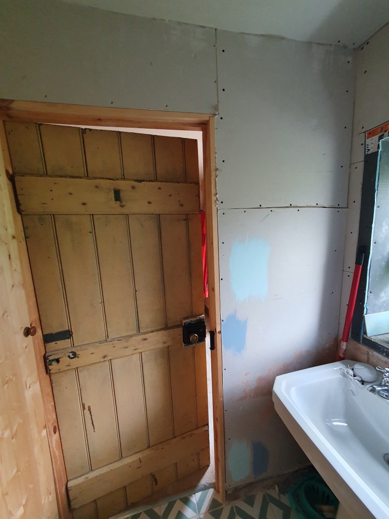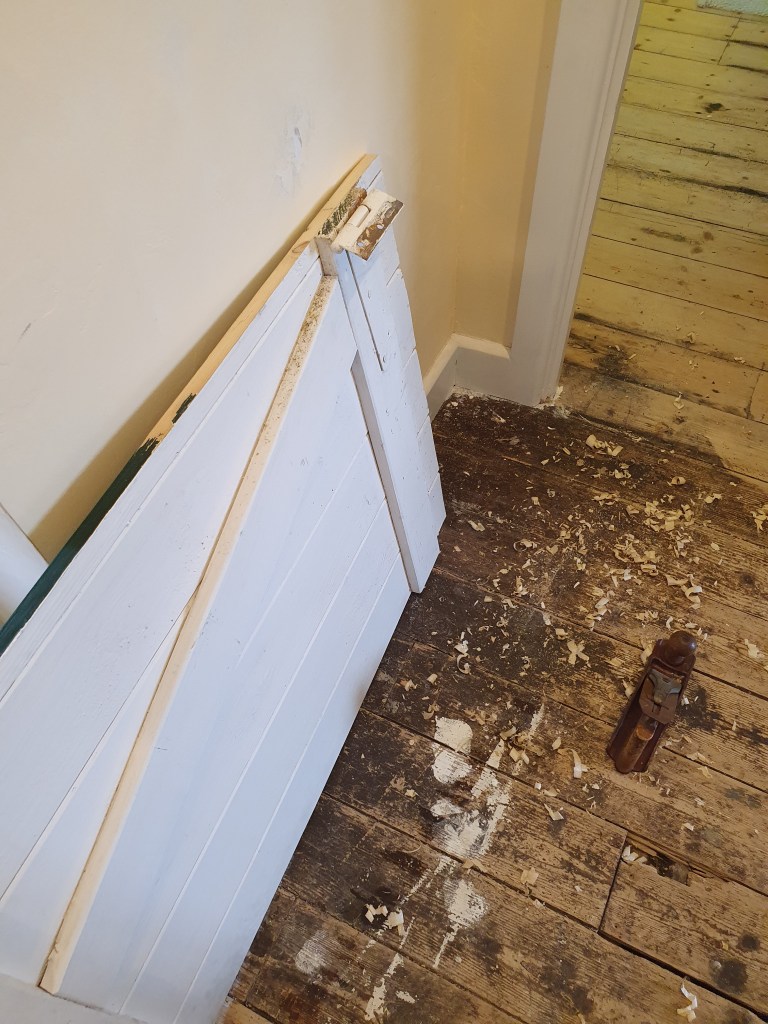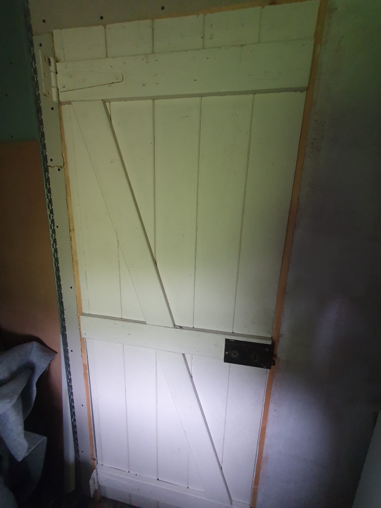 We aren’t planning to do the shower room any time soon, so it would be nice to be able to close the door on it. We have a door ready to go, so I pulled it out and cleaned it up, before offering it up to see if it fit. It only needs a few millimeter off to fit, so that will be another small job for another day.