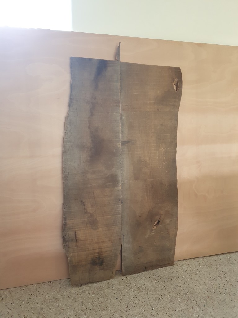 Sanding all done, the remaining issue is that boards are a little warped. Chris suggested I try steaming the wood over a boiling pan and then weight it down. Although things seemed hopeful when I used my own body weight to press it down, I don’t think it’s done the job. We might try again with a wallpaper steamer, and if that doesn’t work just go for screws.