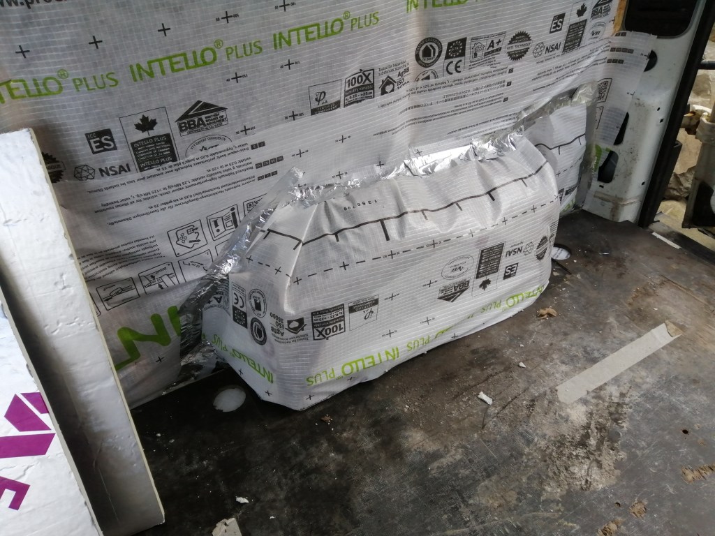 With vanlife beginning I didn’t want work on the house to completely stop, so I’ve been trying to get some smaller jobs done in the evenings. One fiddly job was to insulate around the lintels above the upstairs windows and add a final wooden board to cover the gap.