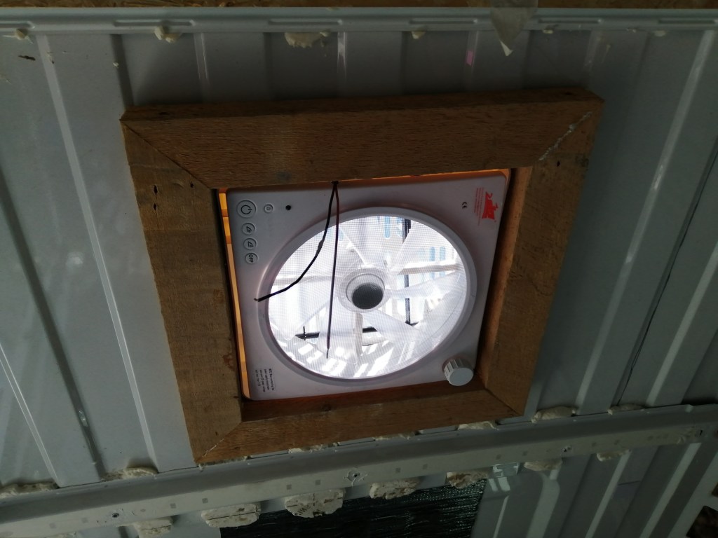 Firstly, Chris wanted to get the ventilation fan in place, needing to cut out a hole in the metal and then secure it in place. With one thing and another the job took most of the day as it refused to fit, and it turned out we didn’t have the right wood.