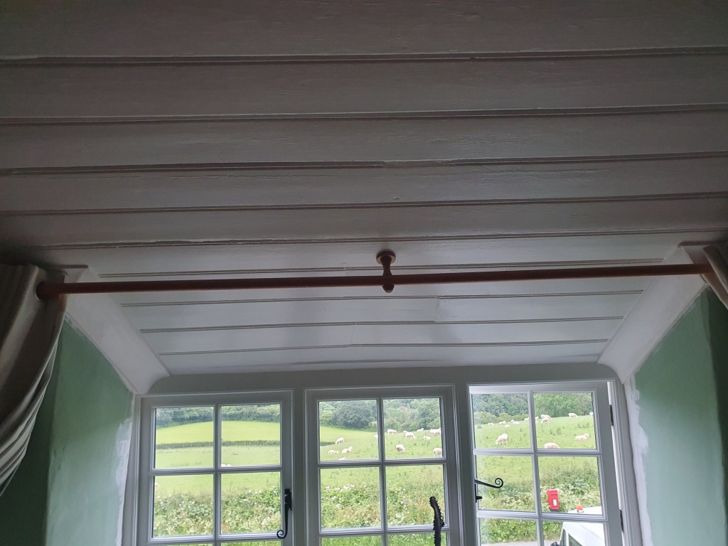 In the lounge I’d been putting off repainting the beams, but Chris told me we couldn’t get new flooring until we’d done it, so I bought the paint and chipped away a few at a time in my evenings. A thankless task but it does mean I can stop staring at all the white paint drips.