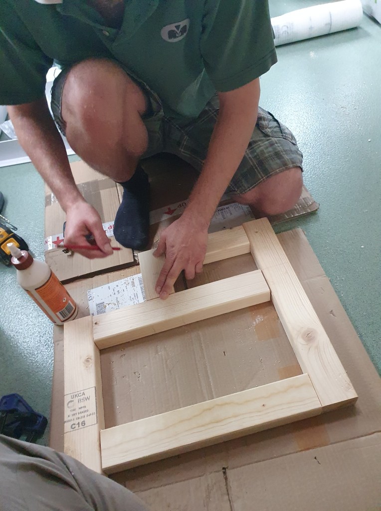 We started with the back bench, which needed two sets of hands to keep everything in the right place while joining them together.