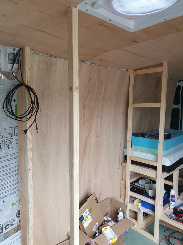 Sadly, Sunday was a bit of a disappointment. We’d hoped to get onto building the structure and the electrics, but the ceiling just sapped all time out of the day with two simple jobs.