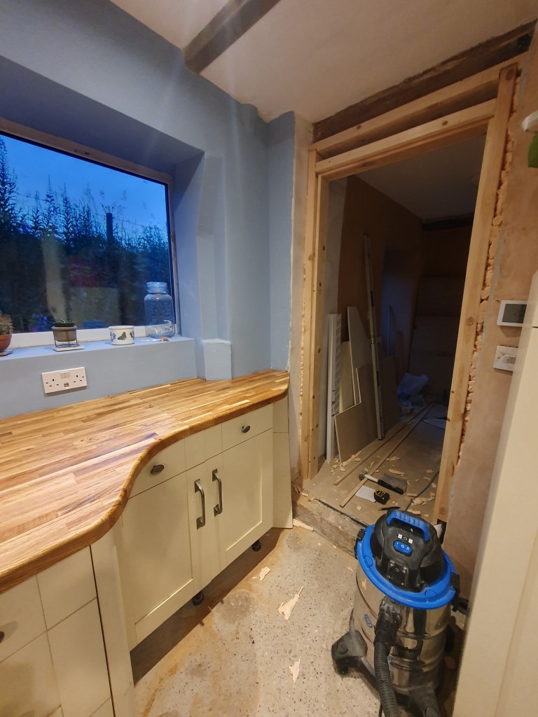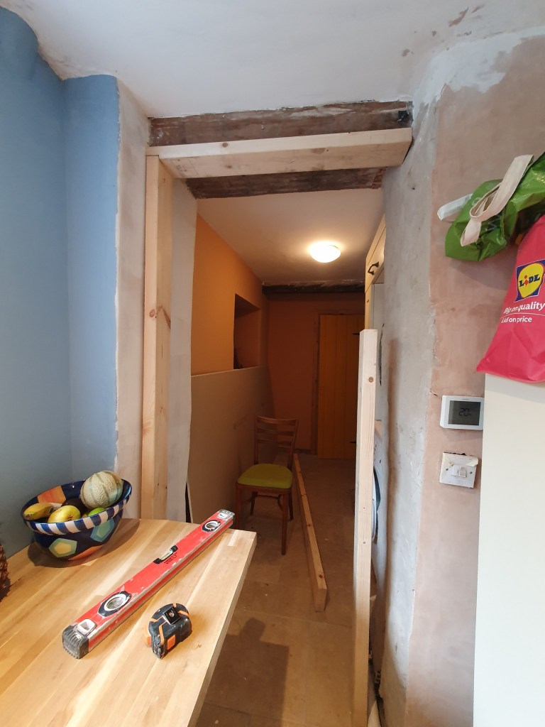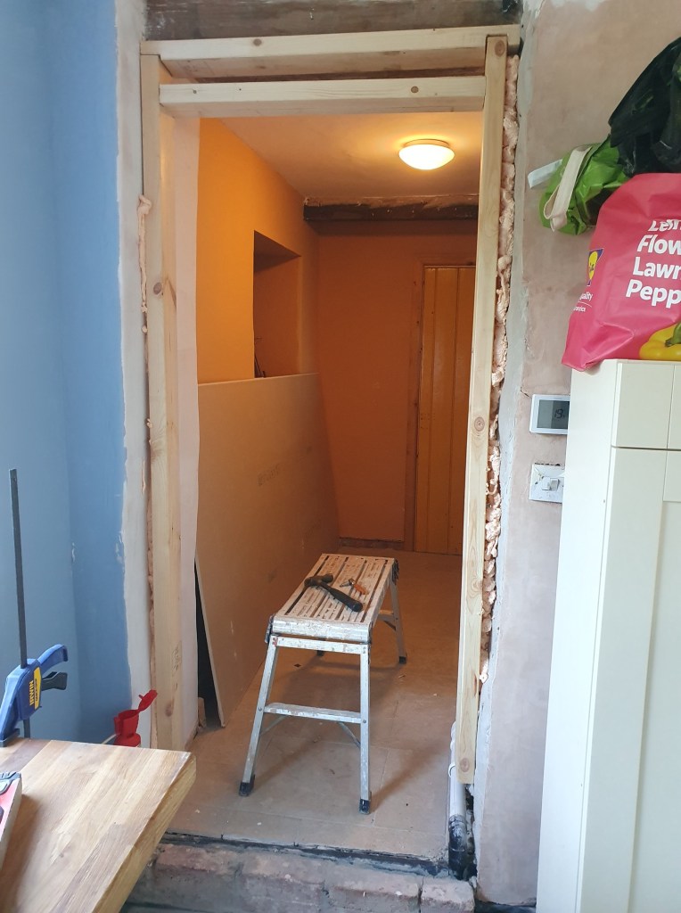 Another door we’d been putting off was the doorway between the kitchen and the utility. The wonky walls, with one just plasterboard and the other solid stone, meant we’d known it was going to be a pain to do.