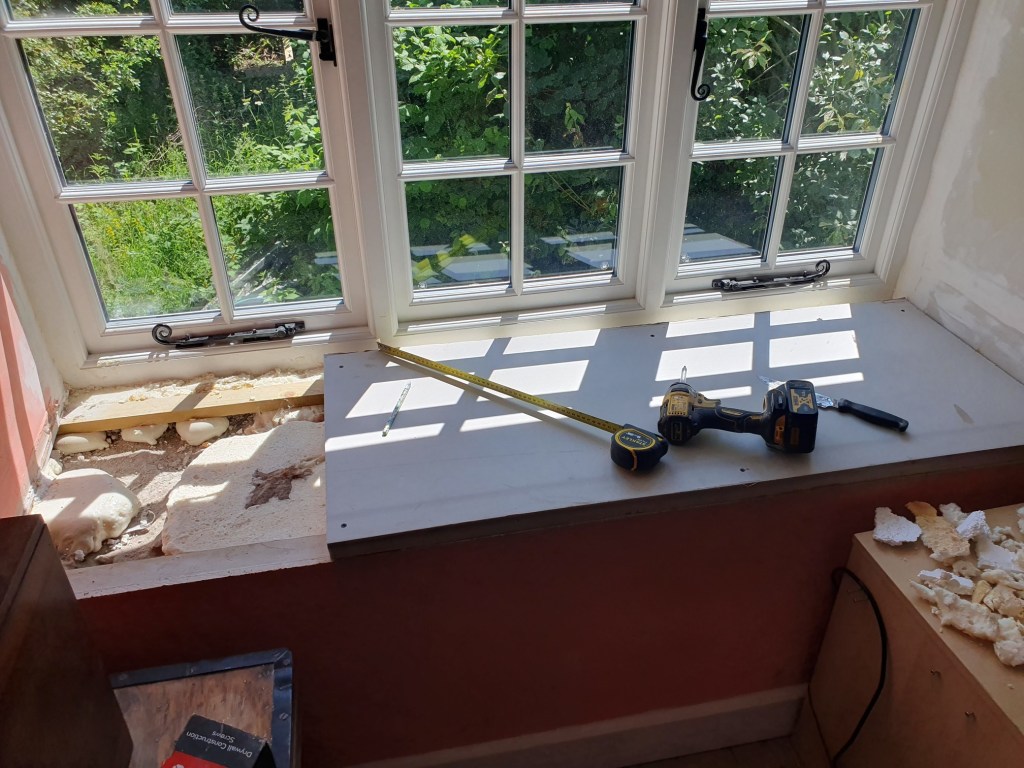 Between his other jobs we asked Max to replace the insulated plasterboard on the windowsills in the spare room. It had collapsed when we’d had to climb all over it when installing the windows.