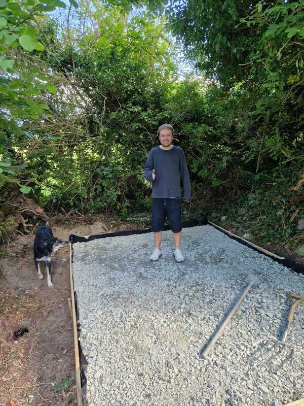 He also borrowed a compactor off a neighbour to compact down the shed base so we can lay the concrete slabs. Just need it to stop raining long enough for us to get on with it.